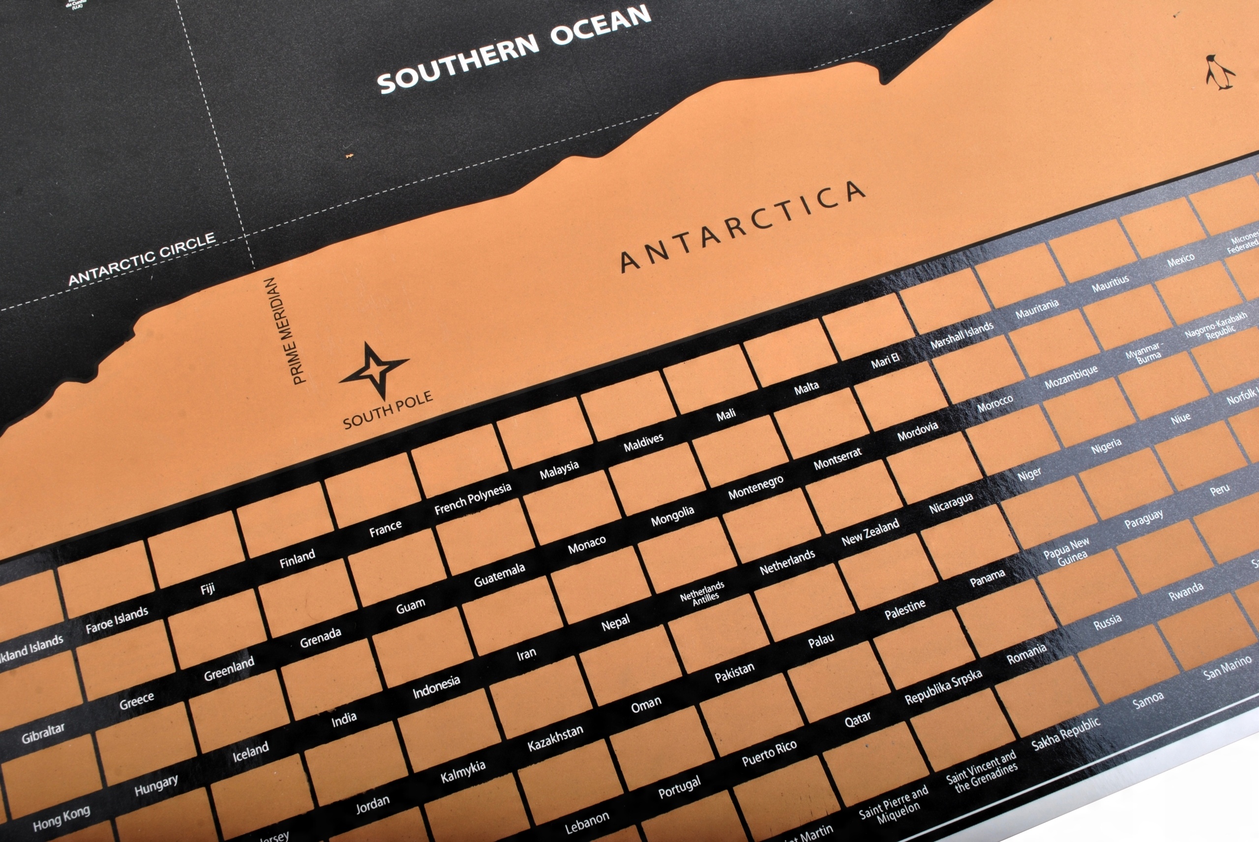 ⭐ Карта закрыта золотой скретч-картой, под которой перечислены все страны. Мы не только стираем площадь конкретной страны, но и стираем ее флаг! Стираем страны, которые вы посетили, сохраняя собственную историю путешествий по миру!