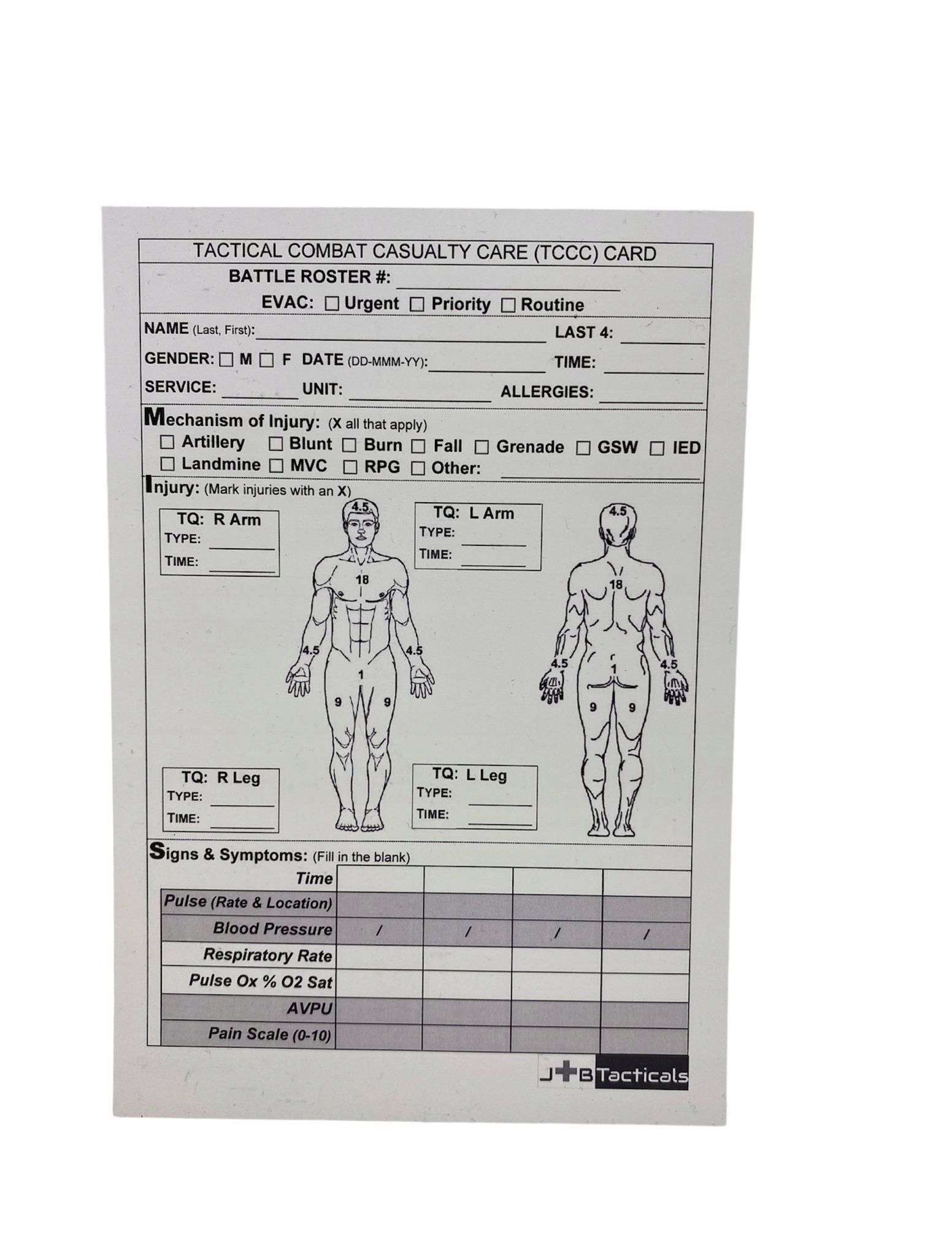 КАРТА TCCC FIELD EVACUATION CARD солдатська картка