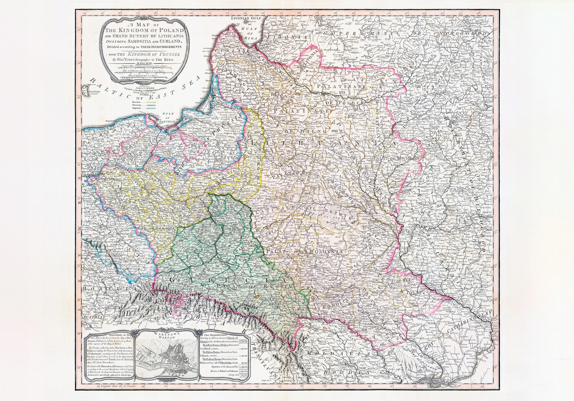 Репродукция карты из 1799 года, показывающая границы трех разделов Польши, Уиллом Фаденом