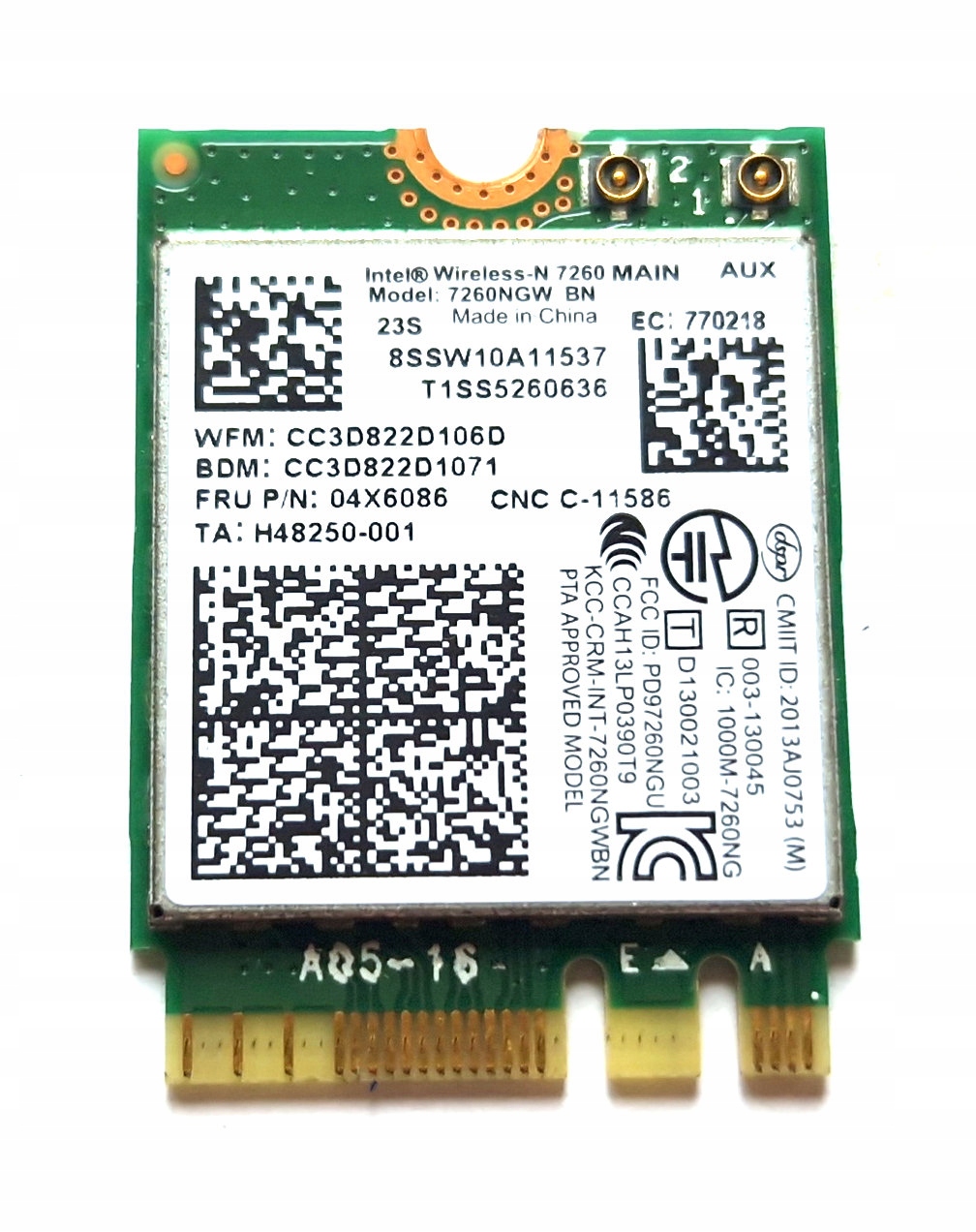 Просматривая «КАРТА WIFI INTEL WIRELESS-N 7260 BT 04X6086 LENOVO», вы можете быть уверены, что данный товар из каталога «Kарты miniPCI, miniPCIe» будет доставлен из Польши и проверен на целостность. В цене товара, указанной на сайте, учтена доставка из Польши. Внимание!!! Товары для Евросоюза, согласно законодательству стран Евросоюза, могут отличаться упаковкой или наполнением.