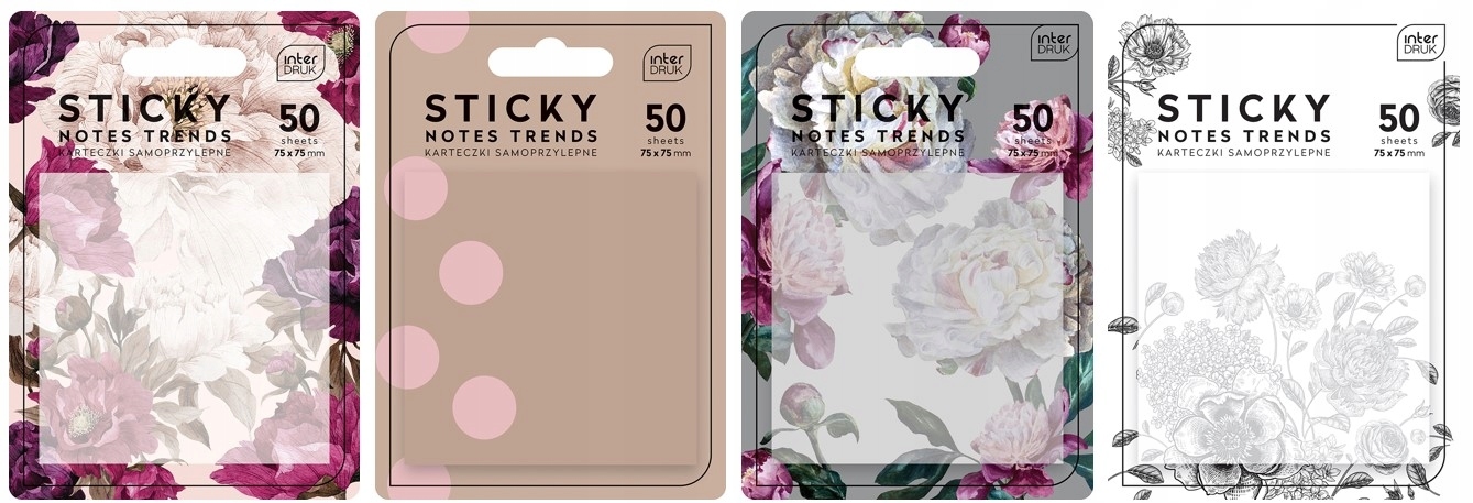 Самоклеящиеся заметки в 4-х узорах формата 75х75 мм.