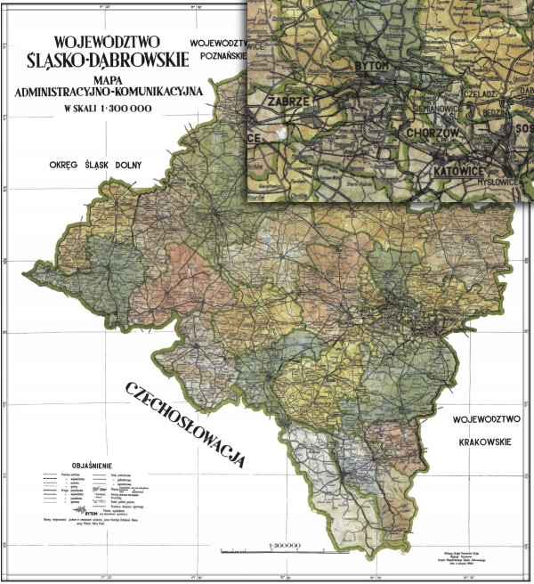Таблица. 49 - 1923 Францишек Попиолек -- Удобная карта Силезского воеводства. [1:400 000]