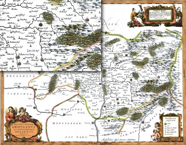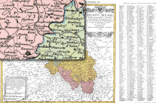 Мартин Хельвиг, Abris der Landschafft Schlesien sampt der Aengrentzenden Königreichen und Landern, 1571 (1561), [ок. 1: 1 300 000]Мартин Хельвиг, Silesia Ducatus a Martino Helwigio Nissense descriptus, 1646 (ориг. 1561), [ок. 1:960,000]Станислав Порембский, Ducatus Oswiezensis, et Zatoriensis, Descriptio, 1584, (ориг. 1563) [ок. 1:1 350 000]Андреас Гинденберг, Ichnoortographia Plesniaca, 1636 г., [ок. 1:16 200 – 1:17 850[Йонас Скультет], Ducatus Silesiae Grotganus cum Districtu Episcopal Nissensi, 1639–1641, [ок. 1:185 000][Йонас Скультет], Ducatus Breslanus sive Wratislaviensis, [после 1686 г.], [ок. 1:250 000]Теодор Данкерт, Accuratissima Ducatus Silesiae eique Regnum Bohemiae, Marchionatus Moraviae et Lusatiae, ок. 1680 г., [ок. 1:750 000Иоганн Баптиста Хоманн, Regni Bohemiae, Ducatus Silesiae, Marchionatus Moraviae et Lusatiae Tabula Generalis, ок. 1730 г., [ок. 1:560,000]Театр войны в Новой Силезии Карт Parl le Rouge Ingenieur Geographe du Roy et de son. КАК. Монстр граф де Клермон. Avec Privilege du Roy 1741, 1741, [ок. 1:640,000]Иоганн Якоб Лидл, Novissimum Silesiae Theatrum id est Exactissimus Superioris et Inferioris Silesiae, Comitatus Glaceusis, et ronfinium regnorum Schematismus, in quo Non solum Singulae Amplissimi hujus Ducatus Provincia, Principatus Dynastiae, Districtus, Territoria , verum etiam Singulae civitates, oppida, arces, pagi, Stationes et viae veredariae, montes, Sylvae, Lacus, Flumina и т. д.: ex originalibus et probatissimis topographiis deprompta exhibentur. Студия и опера Йоанниса Якоби Лидла, рег. et Privilegeati Universitatis Viennensis Chalographi [...], [ок. 1745 г.], [ок. 1:400 000]Л. Конде, Меридиональная партия герцога Силезского, 1748 г., [ок. 1:400,000]Маттеус Зойтер, Silesiae Ducatus Великий там. Quam Inferior. Juxta suos XVII Minor. Principatus Cura et Sumtibus по Матф. Зойтер. СК М геогр. август Винд с Привилом. С.Р. Имп. Викариат, [ок. 1750 г.], [ок. 1:1.680000]Тобиас Майер, Ducatus Silesiae. Tabula Geographica Generalis, statui hodierno, ei nempe qui post pestem Dresdensem locum obtinet, Adaptata iustaque Graduatione rectificata, per Tob. Майер, [1752] 1749, [ок. 1:868000]Иоганн Матиас Хаас, Ducatus Silesiae. Tabula altera Superiorem Silesiam exhibens ex mappa Hasiana majore desumpta & excusa per Homannianos Heredes Norimb. А. MDCCXXXXVI, [1752] 1746, [ок. 1:585 000]Иоганн Игнац Фельбигер, Carte du Diocese de Breslav avec ses IV Archidiaconats, subdivises en ses Cercles Archipresbyteriales, [1752] 1751, [ок. 1:740 000] Иоганн Вольфганг Виланд, Маттеус фон Шубарт, Principatus Silesiae Grotkani точная географическая таблица exhibens Terram Nissensem simul Circulos Grotkanu, Ottmuchau и Ziegenhals a I.W. Wieland diligentissime delineata ob. praematuram mortem Authoris Denuo rectificata для кесарева сечения и архит. militarem Matthaeu a Schubarth ac sumptibus Principum et Ord: Silaesie A.O.R. MDCCXXXVI excusa Norimbergae ab Haeredibus Homannianis, [1752] 1736, [1:149 500]Иоганн Вольфганг Виланд, Маттеус фон Шубарт, Principatus Silesiae Oppaviensis novissima tabula geographica a IW Wieland locumtenente caesareo quiet delineata, ob. praematuram mortem auctoris denuo rectificata per caesareum locumtenenten et militarem Mathaeum Schubart ac sumptibus Principum et Ordinum Silaesie reducta et excusa Norimb. Аб Хаередибус Хоманнианис A.O.R MDCCXXXVI, [1752] 1736, [ок. 1:150,000]Иоганн Вольфганг Виланд, Маттеус фон Шубарт, Principatus Silesiae Karnoviensis nova et strictissima tabula geographica, commonstrans insimul Districtus ac status Minores Freudenthal Olbersdorf et Steuberndorf a I.W. Wieland locumtenente delineata ob. praematuram mortem Authoris Denuo rectificata Per Caesareum Locumtenentem et Architectum Militarem Matthaeum a Schubart ac sumtibus principum et Ordinum Silesiae Reducta et excusa Norimbergae ab Haeredibus Homannianis A.O.R. MDCCXXXVI, [1752] 1736, [ок. 1: 92 500]Иоганн Вольфганг Виланд, Principatus Silesiae Oppoliensis strictissima tabula geographica, sistens circulos oppoliensem Ober-Glogau, Gros Strehliz, Cosel, Tost, Rosenberg, Falcenberg, Lubleniz a I.W. Wieland, locumtenente caesareo точное очертание , et sumptibus Principum ac Ord. Си