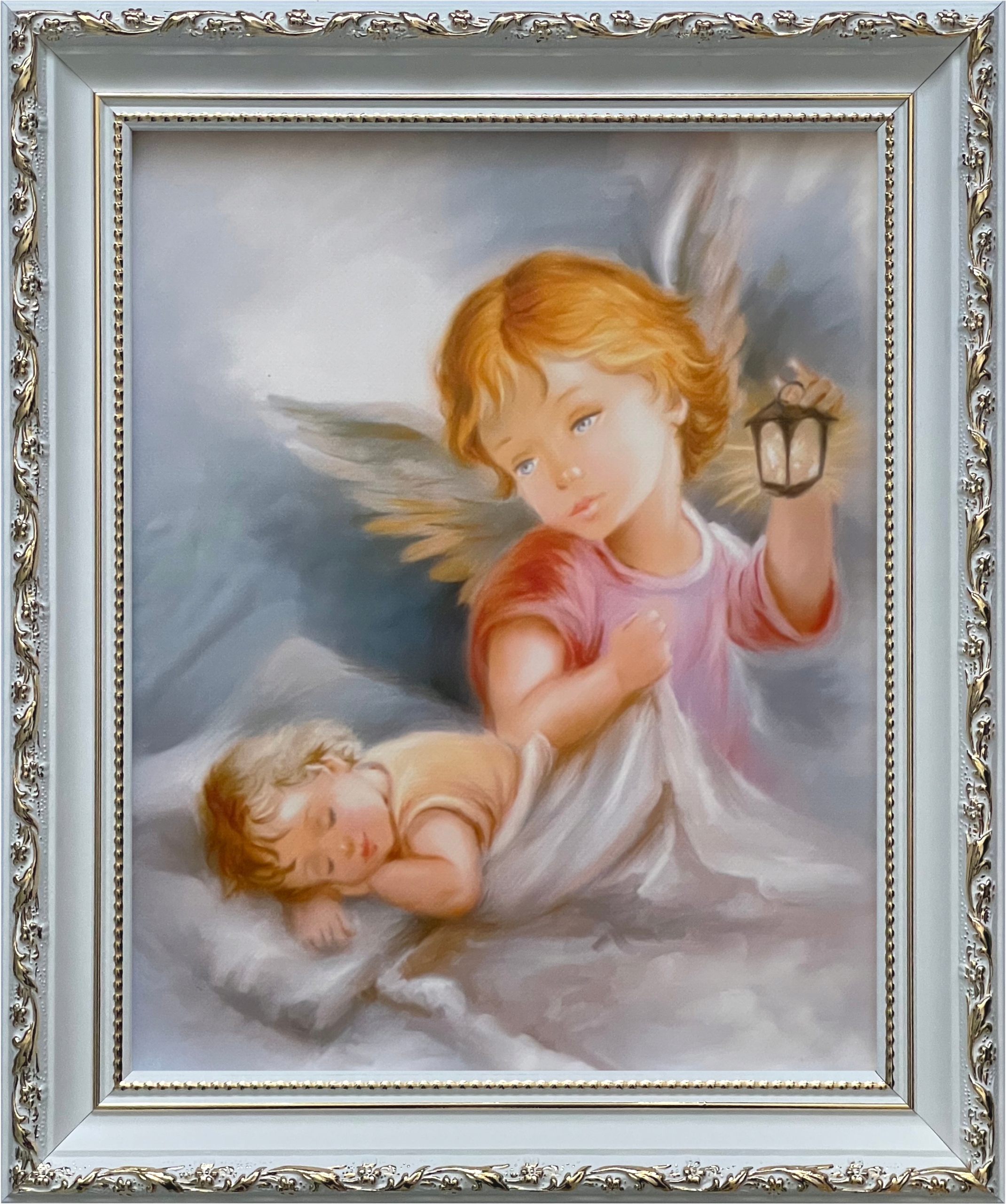 КАРТИНА 31x26 АНГЕЛ ОХОРОНИТЕЛЬ АНГЕЛ БІЛИЙ ПОДАРУНОК НА ХРЕЩЕННЯ В РАМКІ