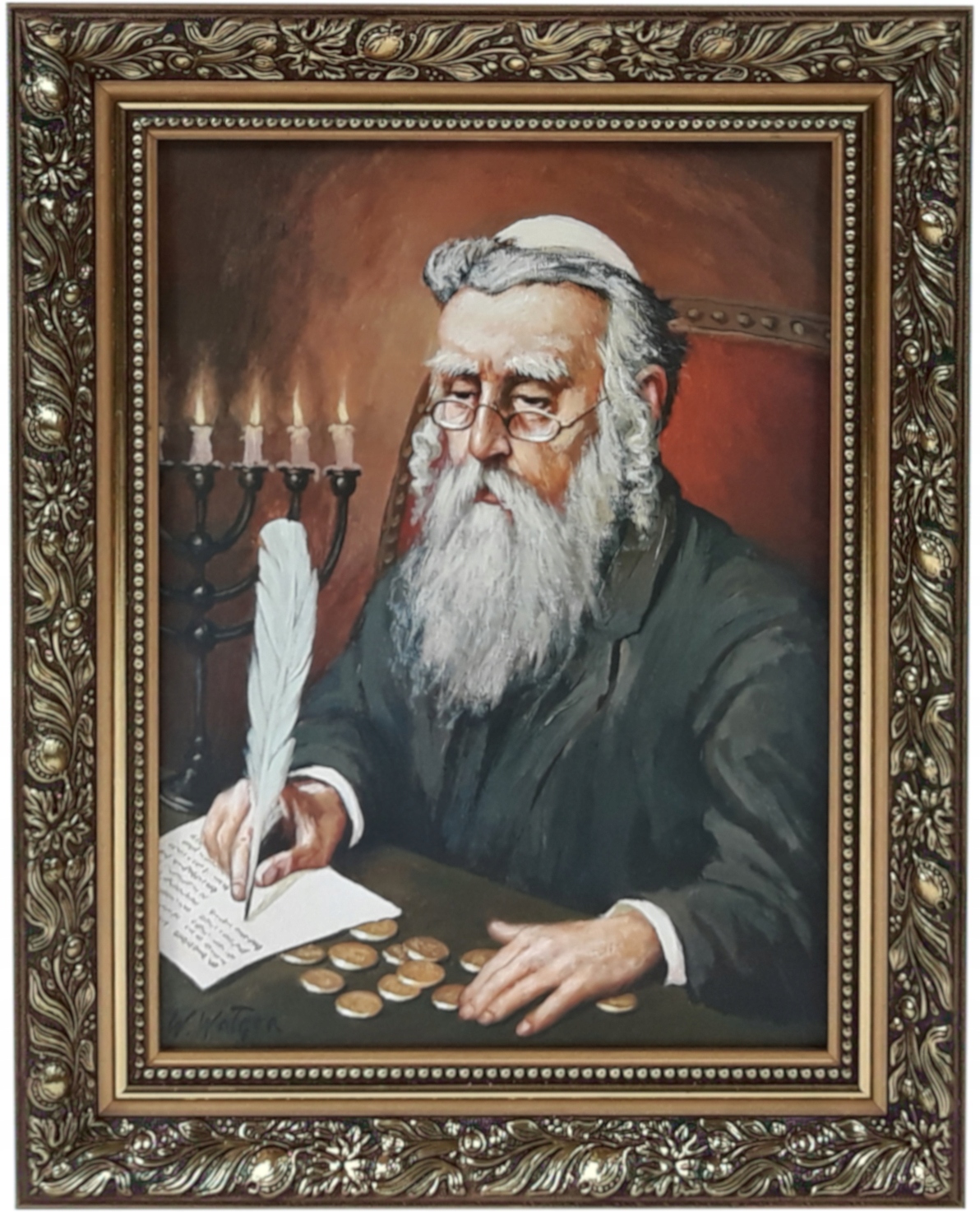 КАРТИНА 50х40 ЄВРЕЇ ГРОШИ ПРИКРАШЕНА ЗОЛОТОЮ РАМКА