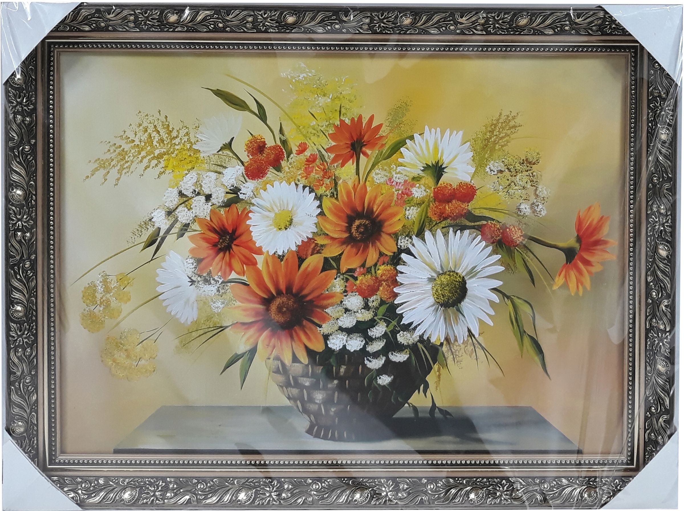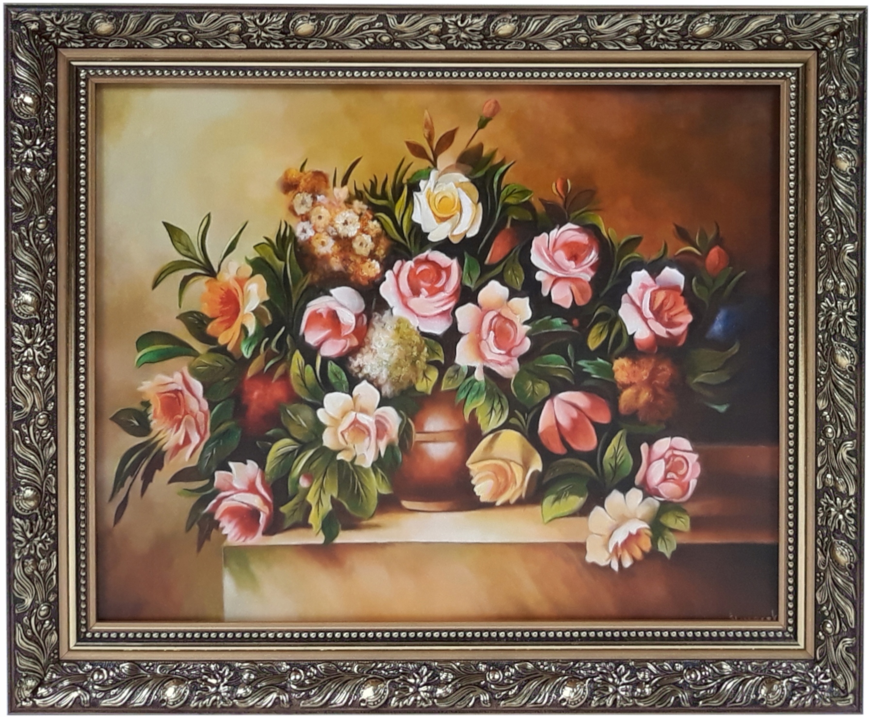 КАРТИНА 50х60 КВІТИ У ВАЗІ, ПРИКРАШЕНІ ЗОЛОТОЮ РАМКОЙ