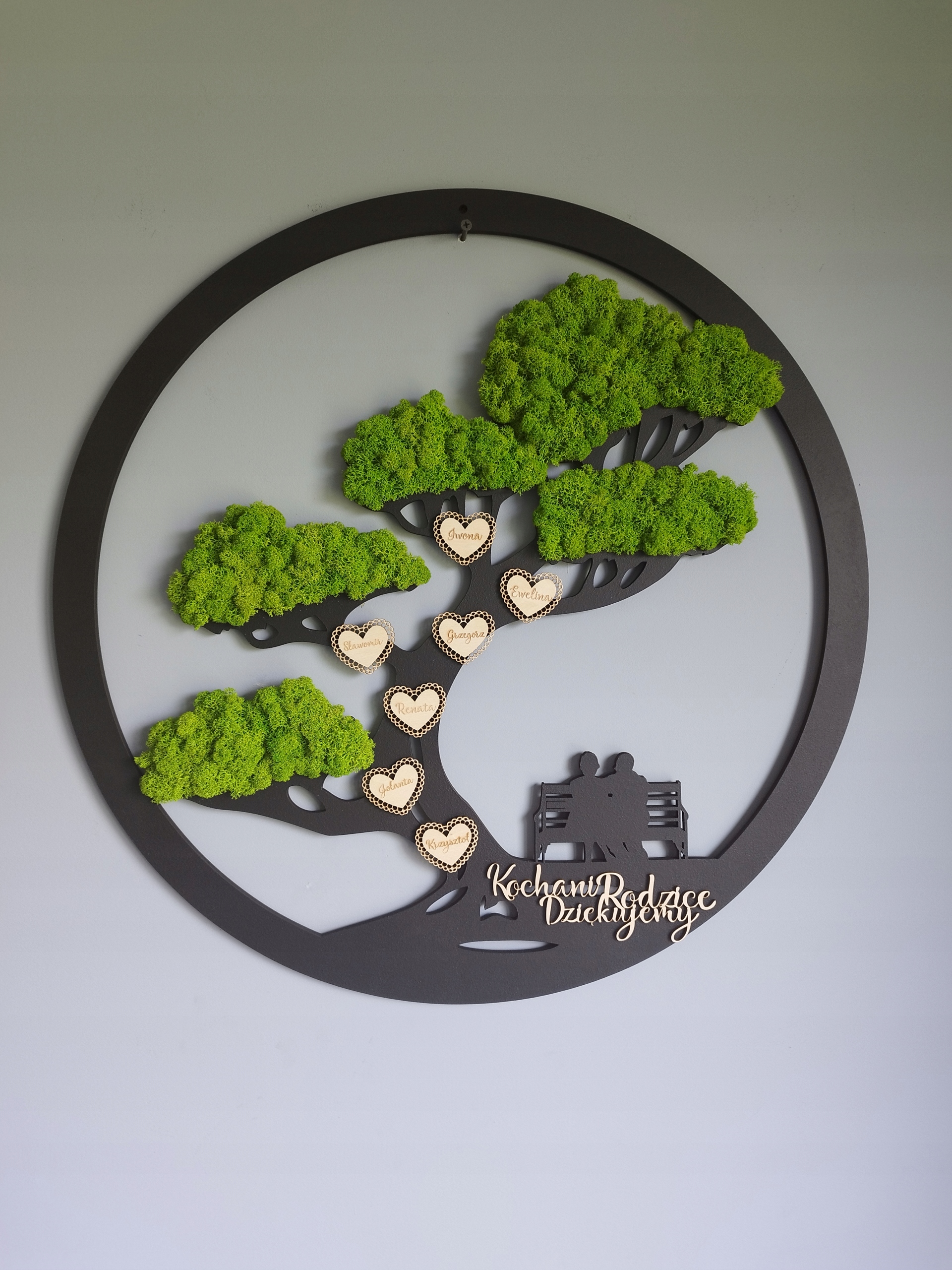 Древо жизни с семьей привлечет внимание каждого вашего гостя. Украшения из мха в последнее время доминируют в декоративных тенденциях. Это эффектное украшение интерьера или оригинальная идея для подарка. Кроме того, форма Семьи на картине привнесет атмосферу покоя, тепла и гармонии