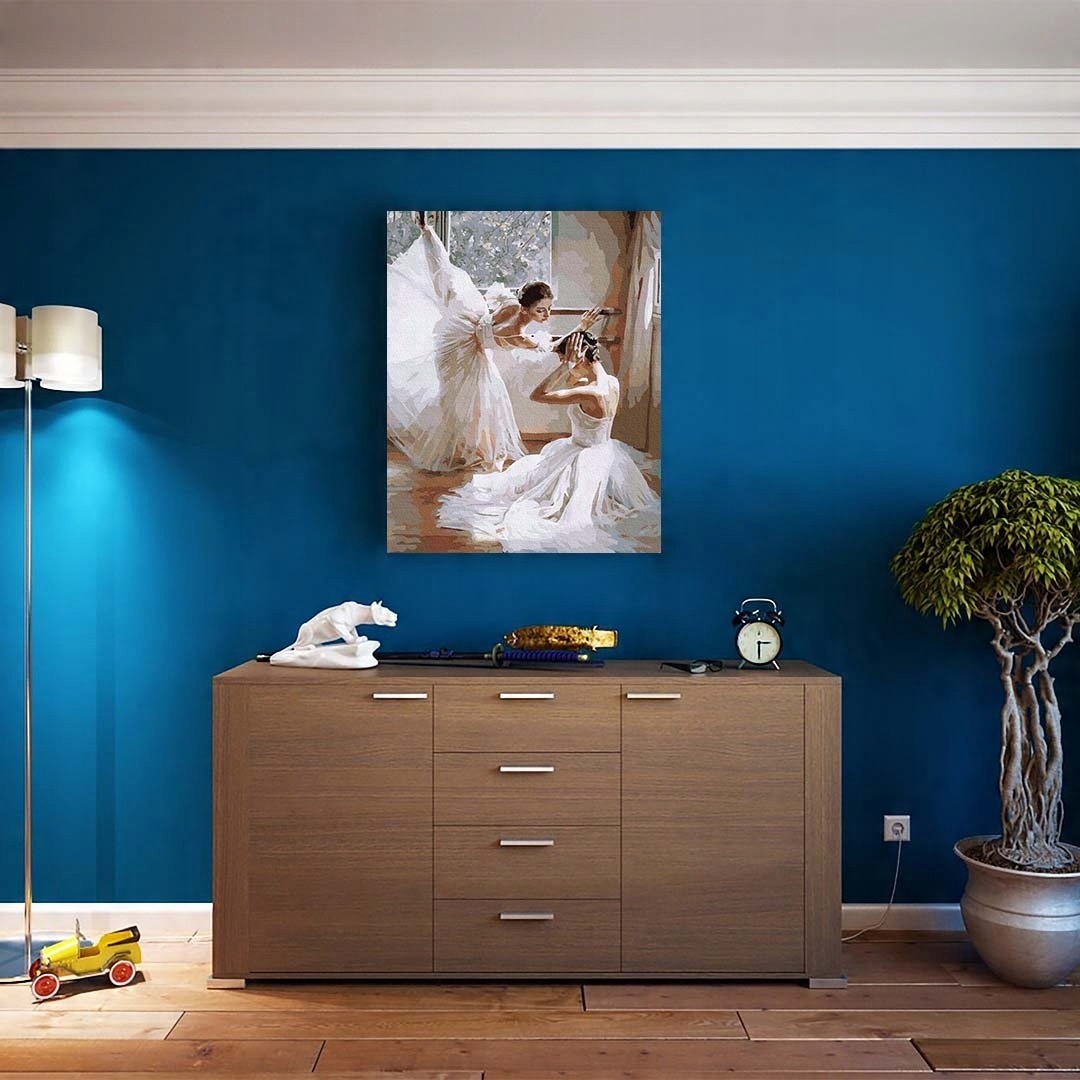 ПРИМЕЧАНИЕ: На этом аукционе представлен набор балерин, раскрашенных по номерам, размером 50x40 см, НА РАСТЯЖЕНИИ