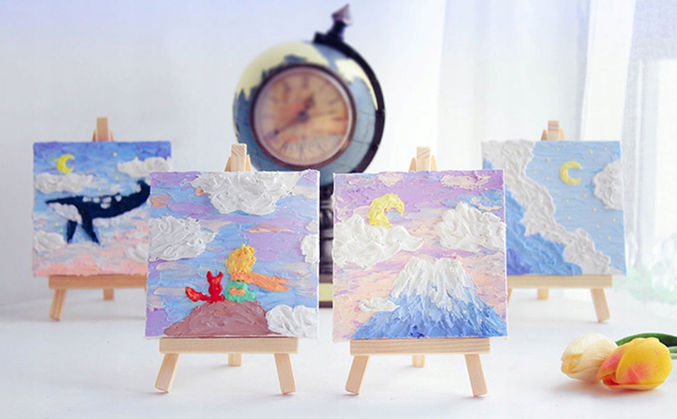 Универсальное использование: Наши мольберты и холсты для рисования можно использовать для демонстрации небольших картин, поделок, миниатюр, детских работ, фотографий, карточек с местами, красивых картин и многого другого.