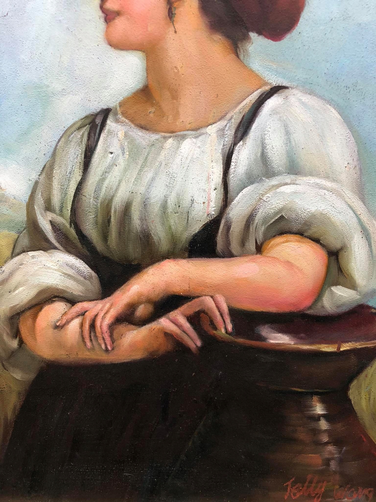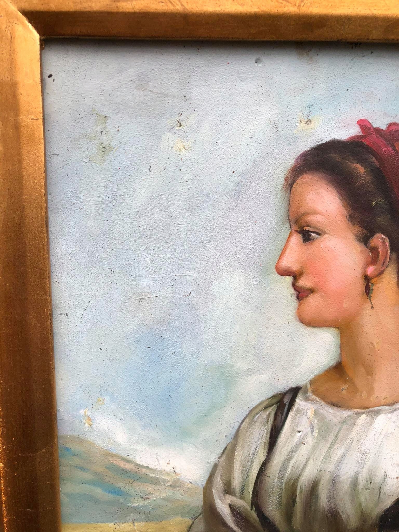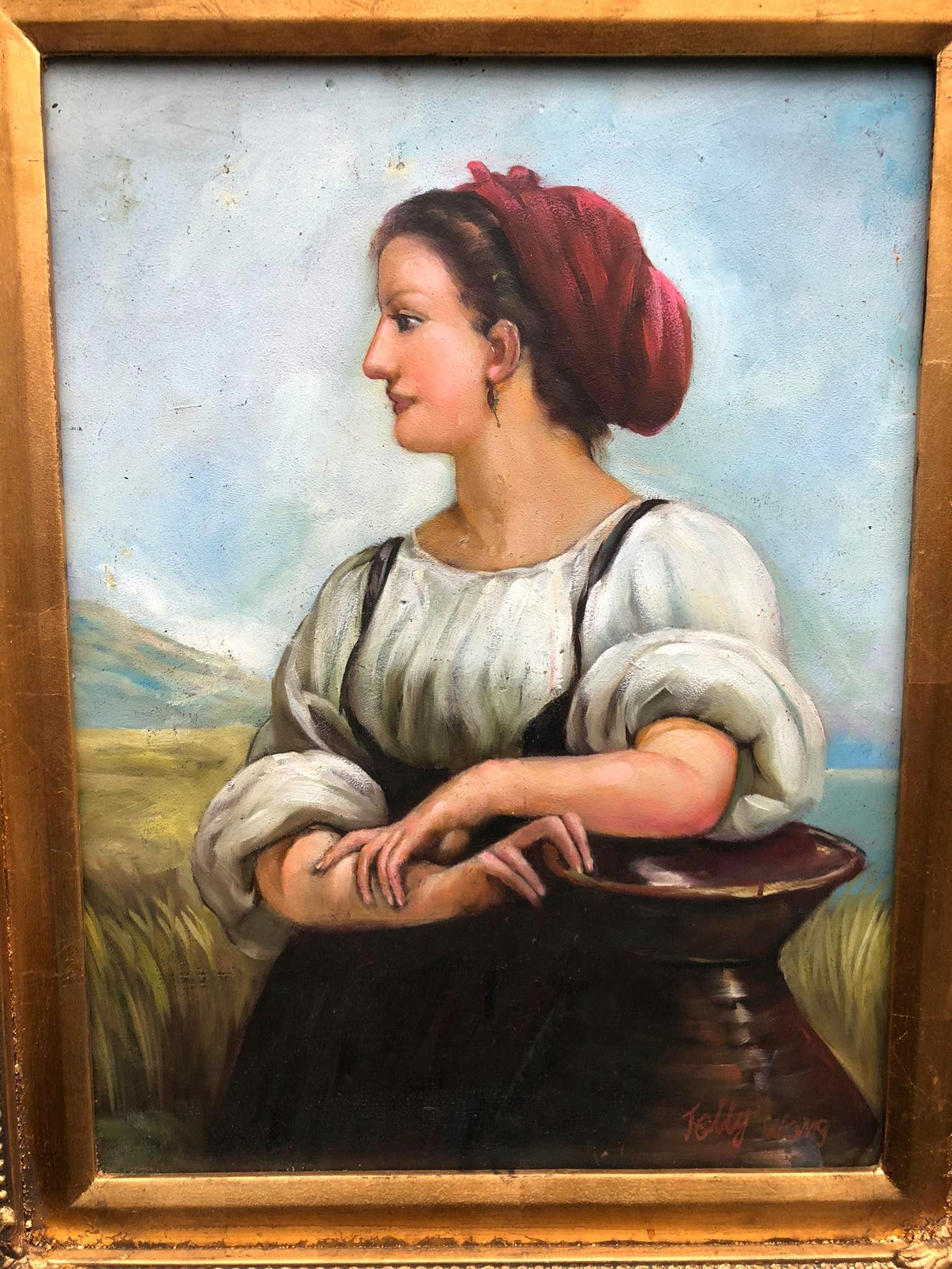КАРТИНА ЖІНКИ З ГЛЕКОМ, ЗОЛОТА РАМА 57,5/47,5 см