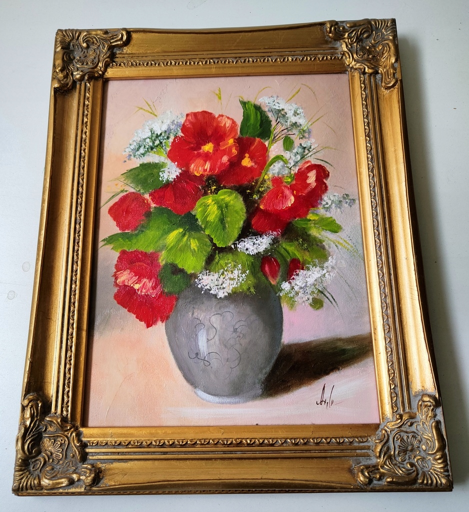 Картина маслом Букет квітів Золота рамка 50 х 40