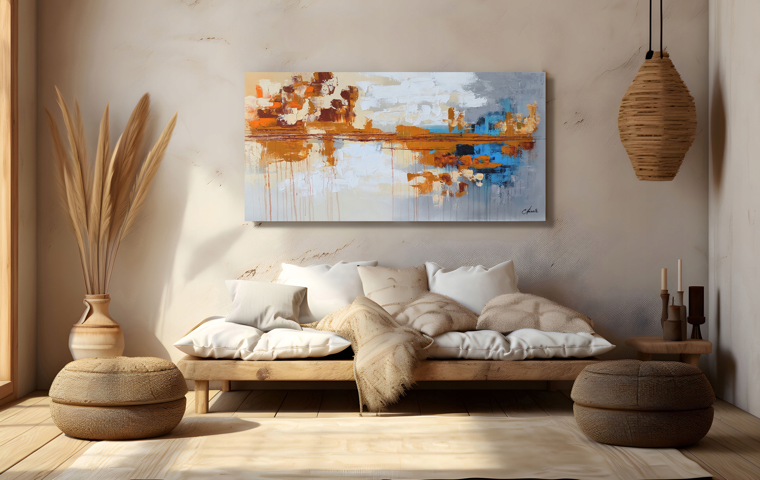 ⏹️ Холст натянут на деревянную подрамку толщиной 2,5 см. Боковины деревянной рамы окрашены, поэтому дополнительная рама не требуется.