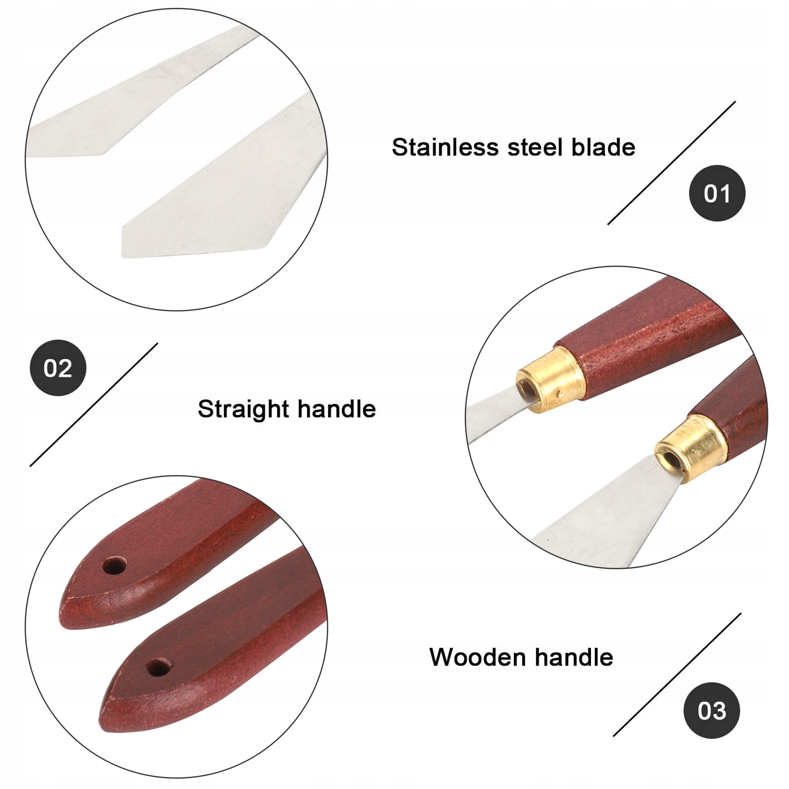 2. Скребок для смешивания масляной живописи имеет гладкую деревянную ручку, которая не поцарапает руку. Изысканный внешний вид и достаточно длительный комфорт в захвате, нелегко соскользнуть. Имеется изогнутый стержень, который можно надолго соединить с режущей головкой с ручкой