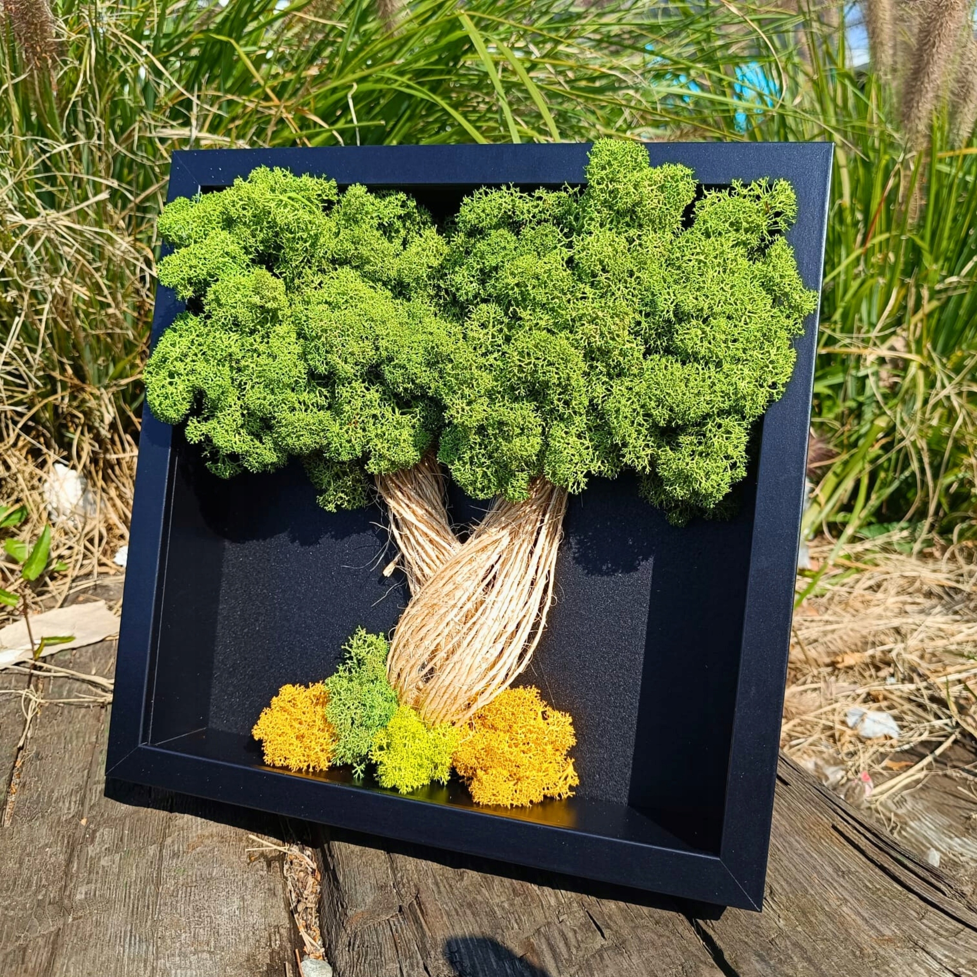 КАРТИНА МОХ, мох, мох оленячий, ДЕРЕВО ЩАСТЯ 26х26 ЖИВА КАРТИНА