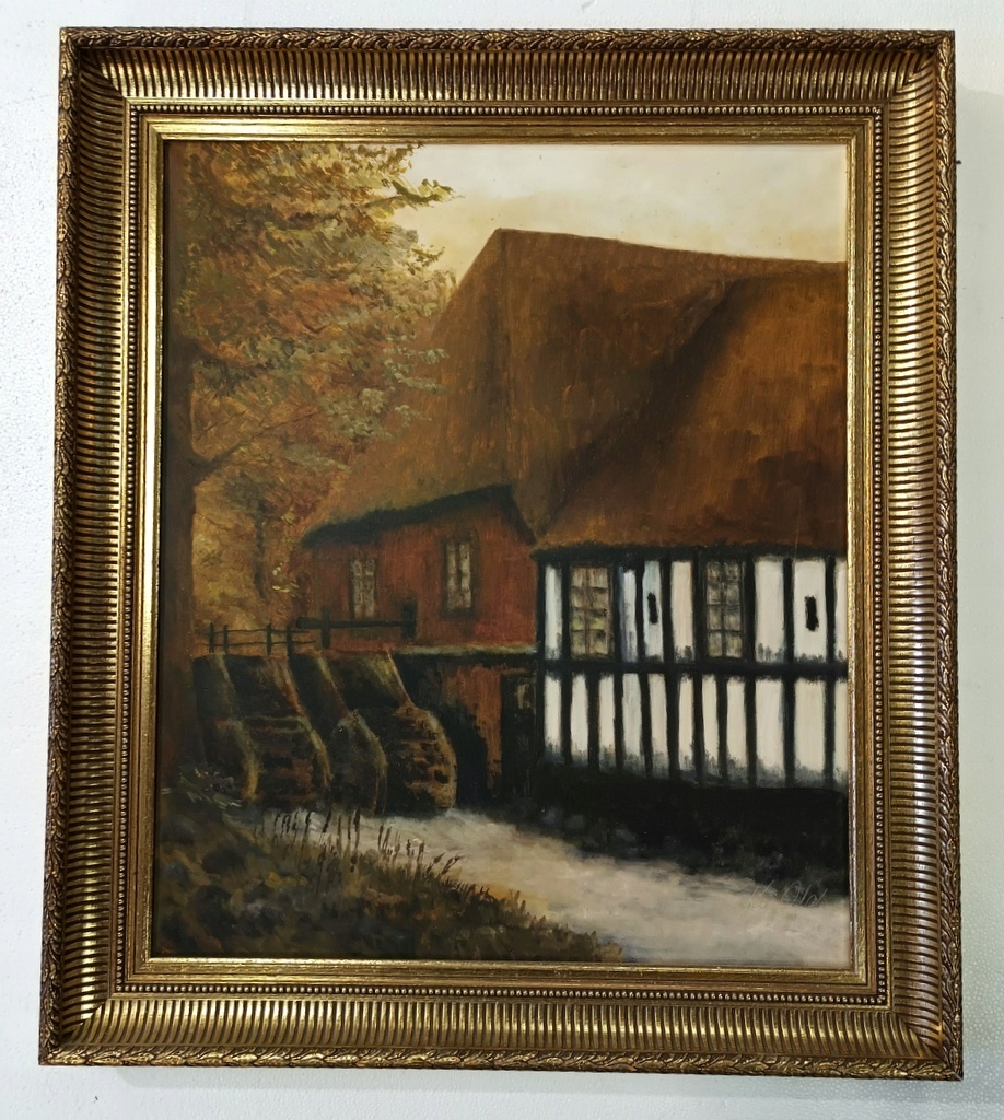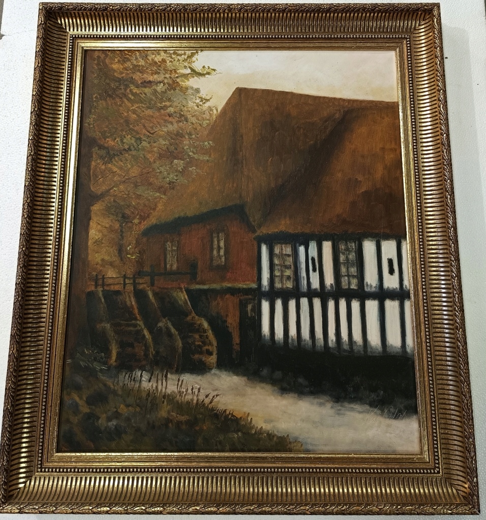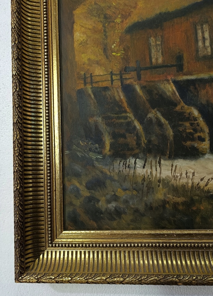 Картина Масло Холст Мельница Стильная Деревянная Золотая Рамка 80 x 70 см cl