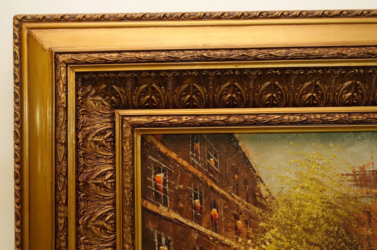 Картина написана в современной манере, в технике мастихина. Это холст, масло, оформленный в просторную толстую деревянную раму цвета старого золота. Мотив, который мы видим – романтические доходные дома и парижская улица. У удачно подобранных, приглушенных цветов есть только преимущества. Настоятельно рекомендую вам купить картину, которая обязательно станет украшением стены в вашем доме!!!