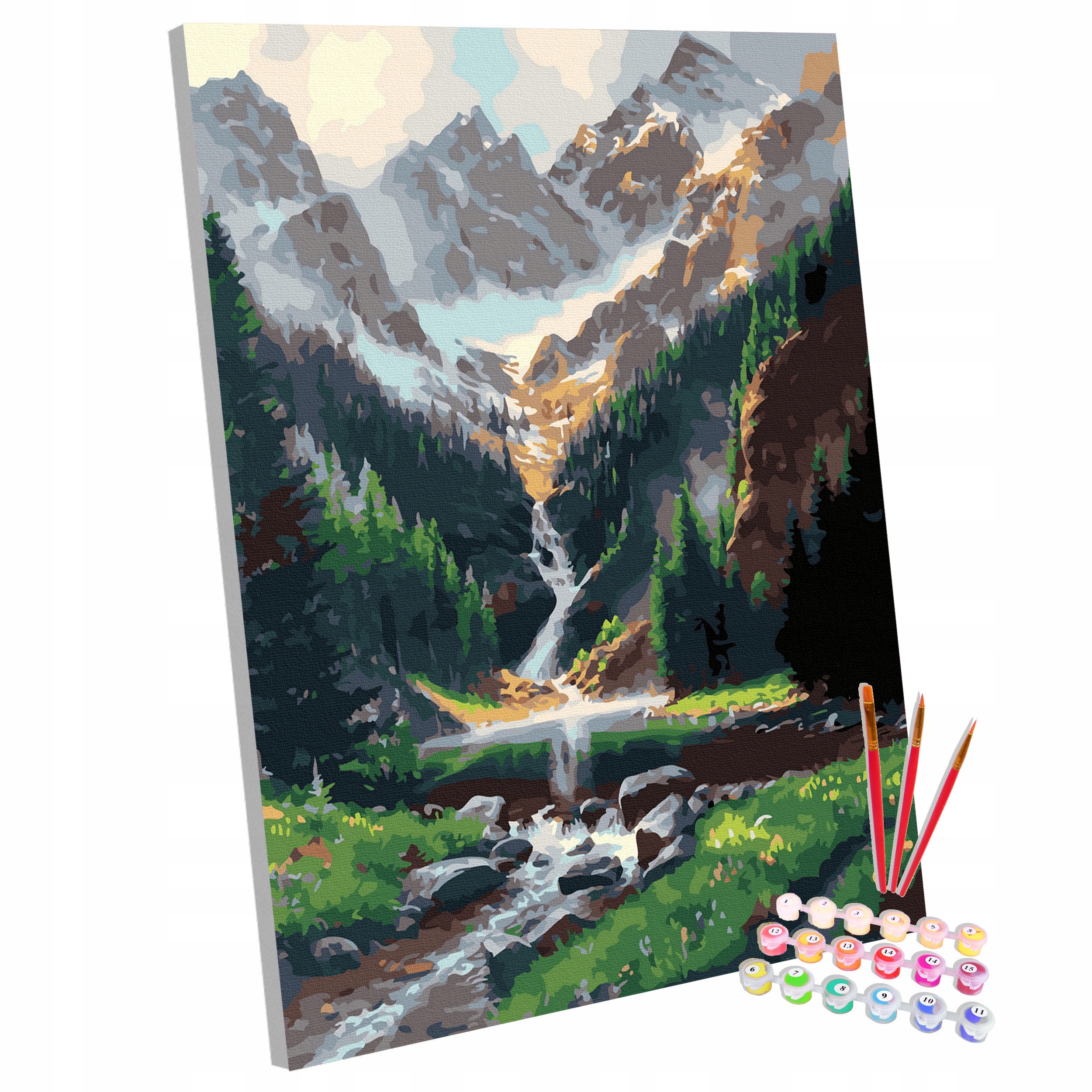 - В комплект входит все, что может понадобиться для начала рисования - холст на ткацкий станок, краски, кисти и даже элементы для подвешивания готовой картины на стену