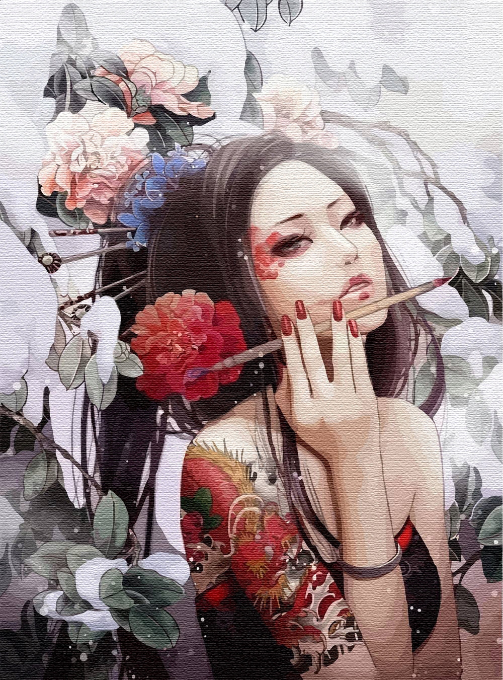 Набор для рисования по номерам Девушка с татуировкой дракона 50х40см на деревянном подрамнике