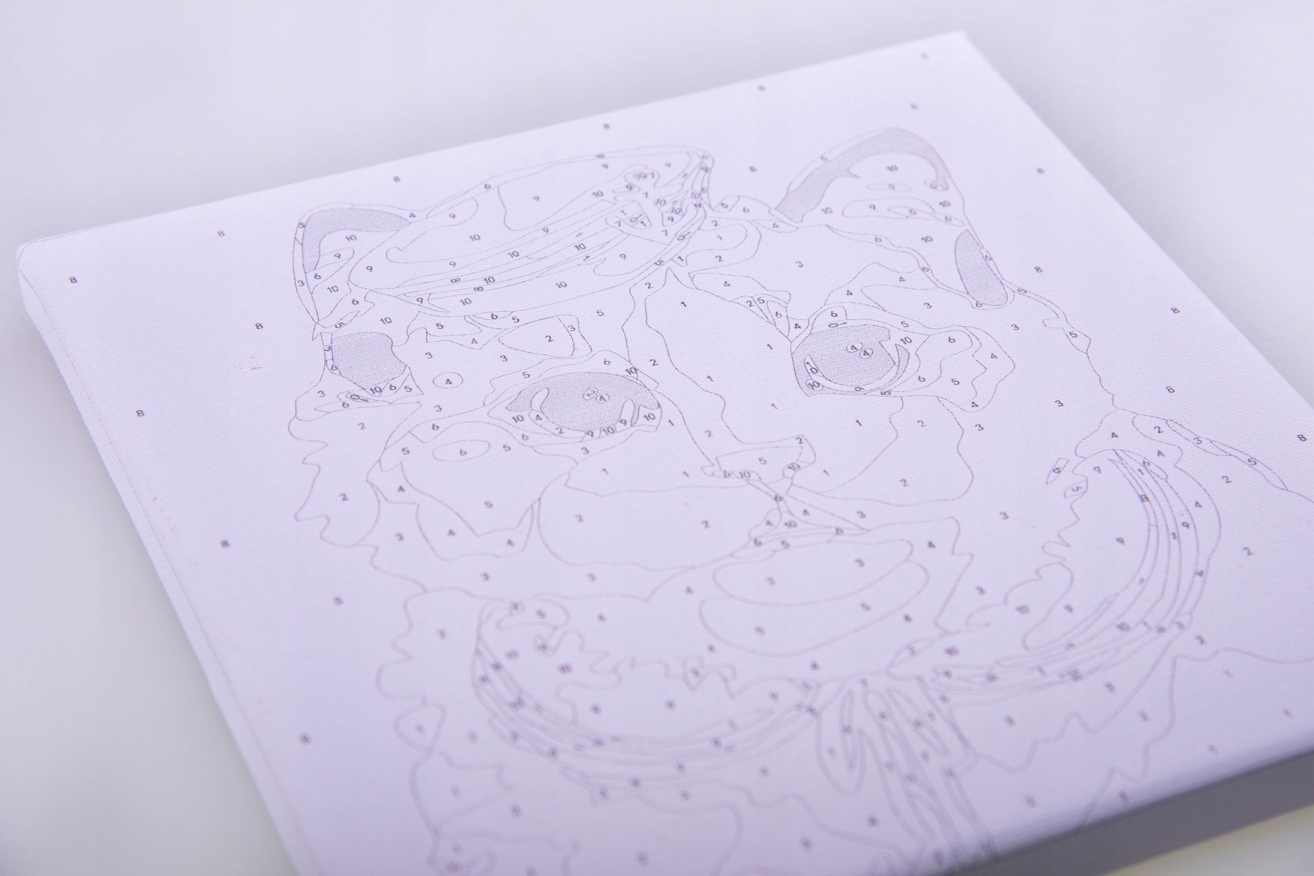 - холст с контуром изображения и цифрами, соответствующими цветам краски