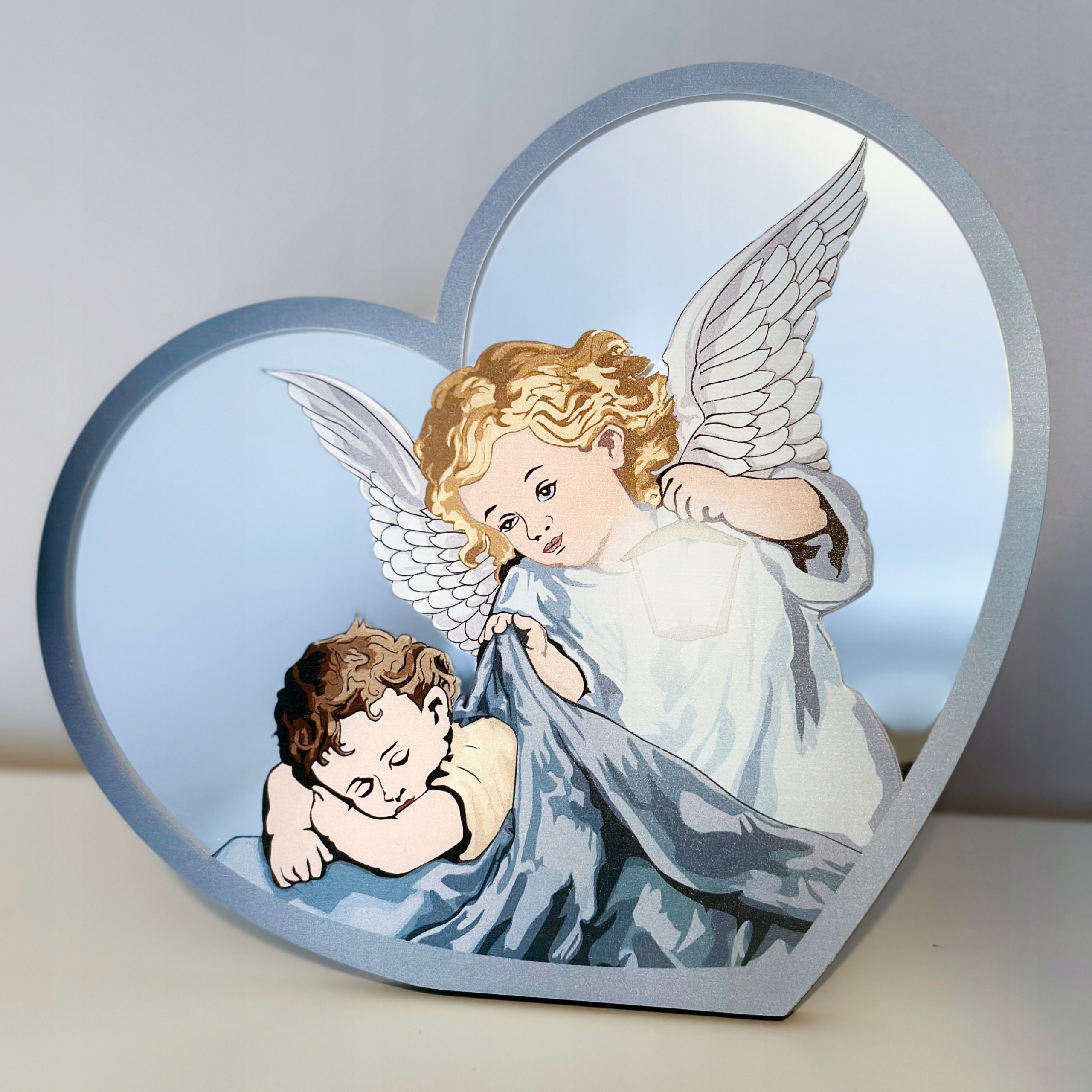 Картина с изображением Ангела-Хранителя с фонарем - прекрасный подарок на Святое Крещение. Высокое качество исполнения, изысканная отделка, элегантная упаковка - все это создает уникальный сувенир на долгие годы... Картина еще и чрезвычайно практична: у нее есть встроенная подставка, поэтому ее можно разместить на шкафу или комоде. или повесьте на стену.