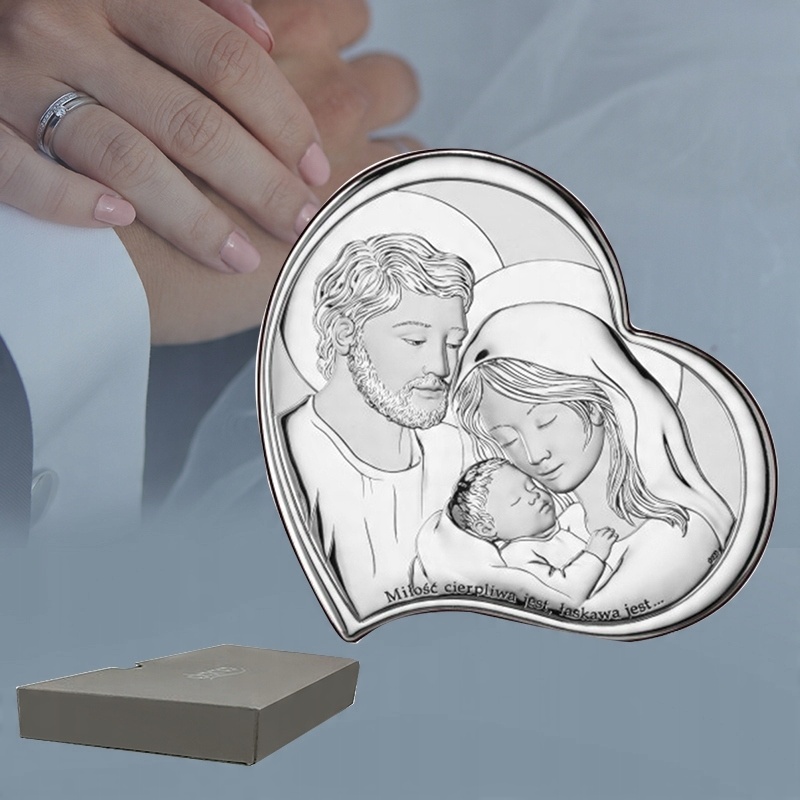 ◉ Изящная серебряная картина с изображением Святого Семейства – прекрасный сувенир на память о многих важных торжествах