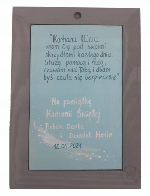 Просто укажите его содержание в электронном письме. например АНГЕЛ ЗОСИ или Сувенир Первого Причастия и т. д.