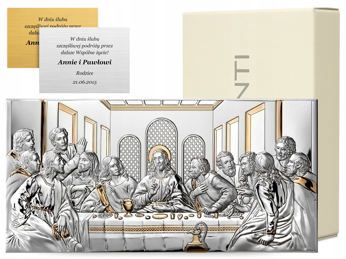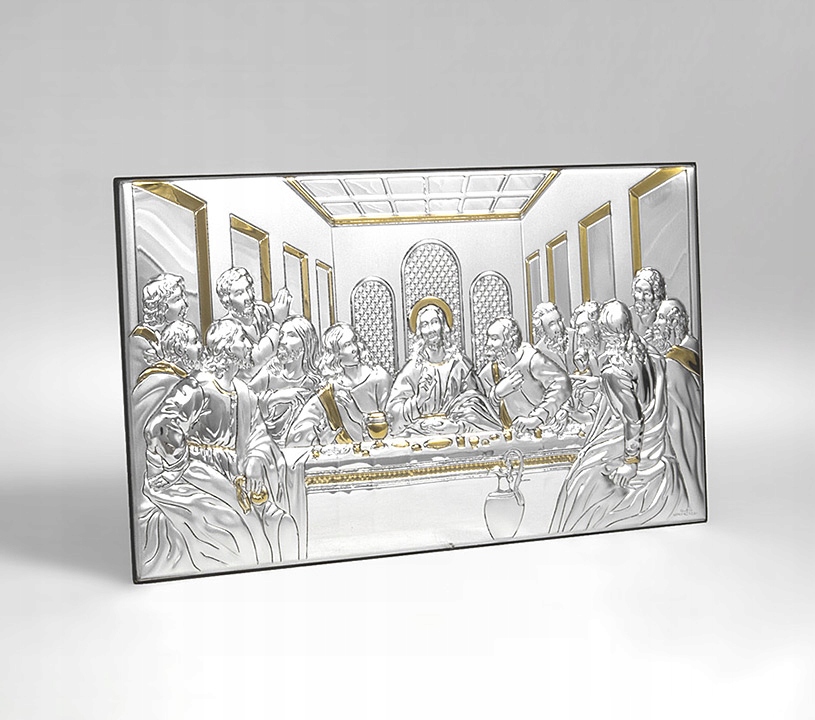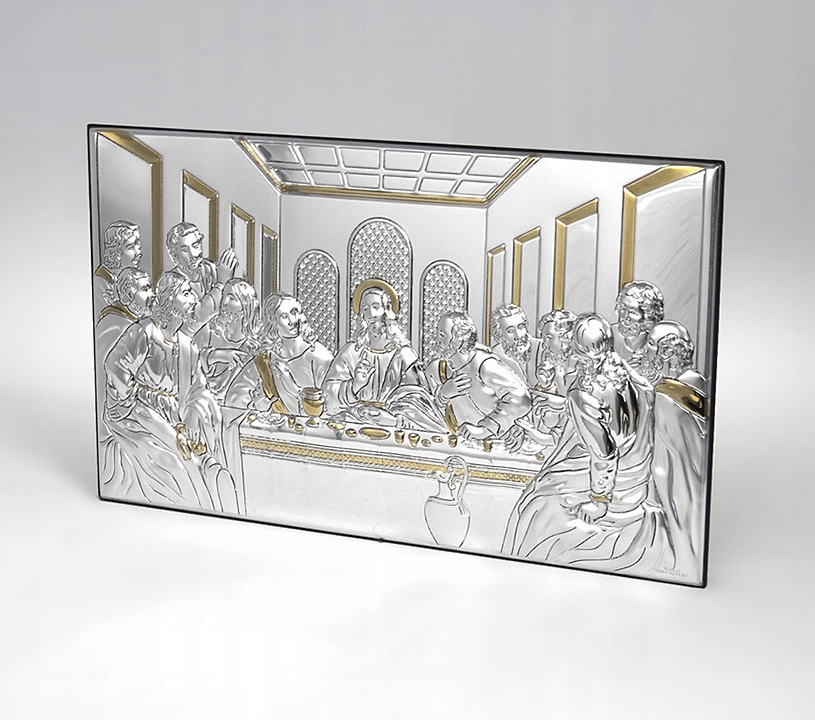 Картина из серебра с позолотой с изображением Тайной вечери. Прекрасный подарок жениху и невесте по случаю свадьбы, юбилея и других юбилеев, дней рождения и многих других событий.