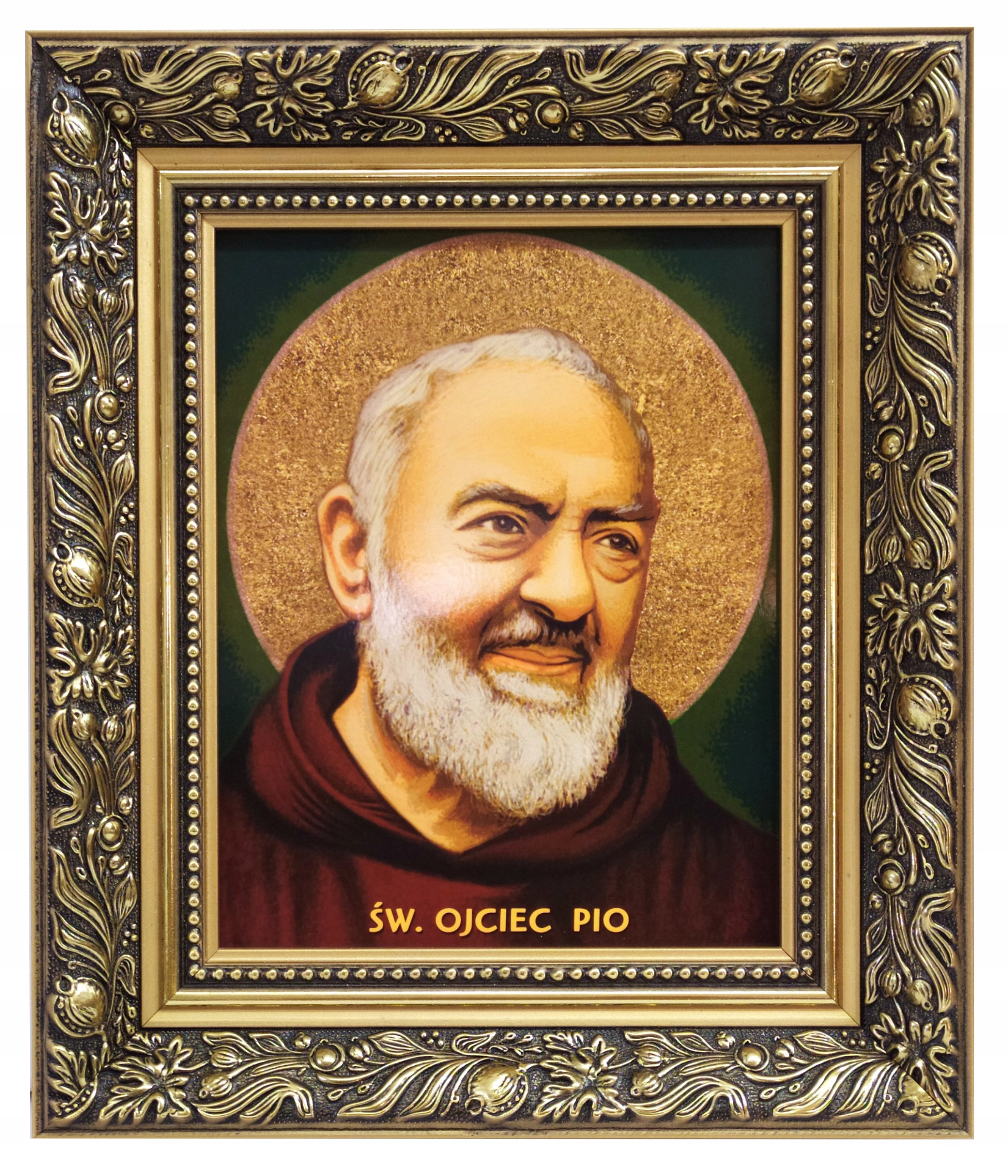 КАРТИНА В ЗОЛОТІЙ ДЕКОРАЦІЙНІЙ РАМІ 30Х35 СВ. БАТЬКО ПІО