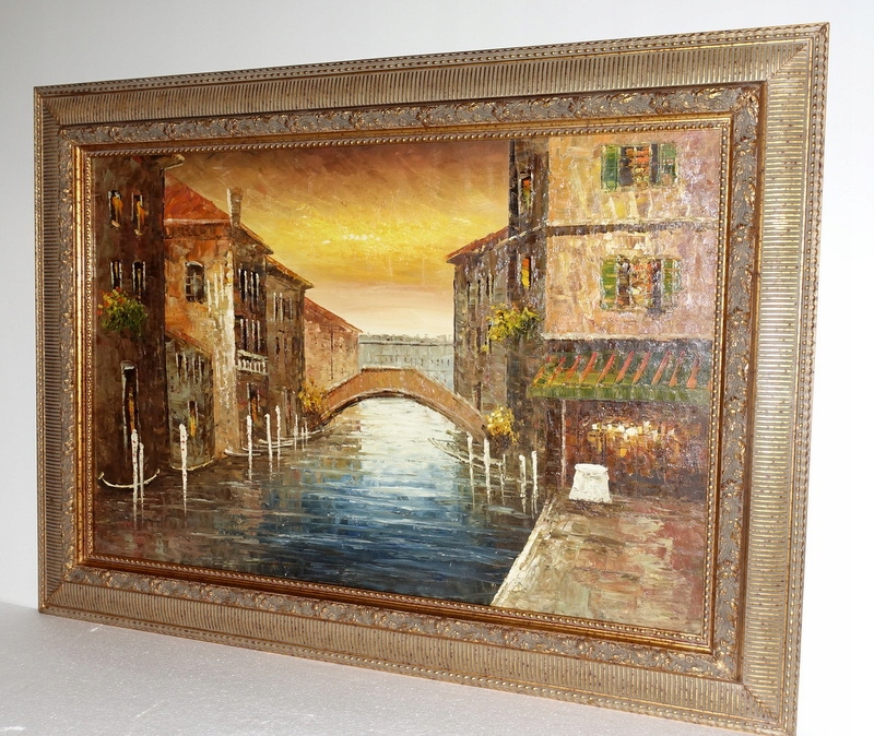 Оформление - ажурная деревянная оправа. рама украшена нежным декором цвета старого золота. Все это в сочетании с прекрасными видами и намеком на Венецию добавляет шика и элегантности; делает картину более эстетичной в вашей гостиной.