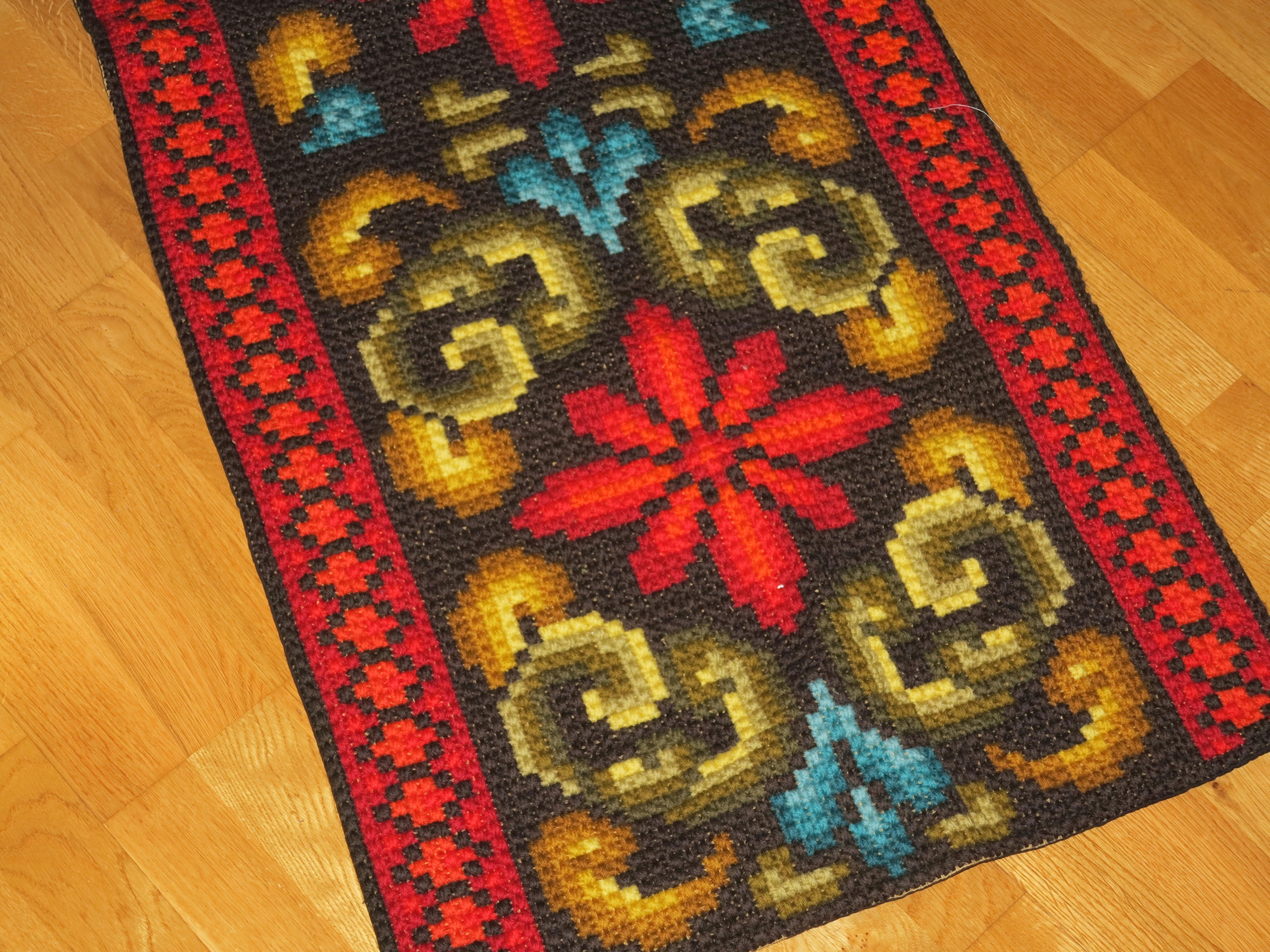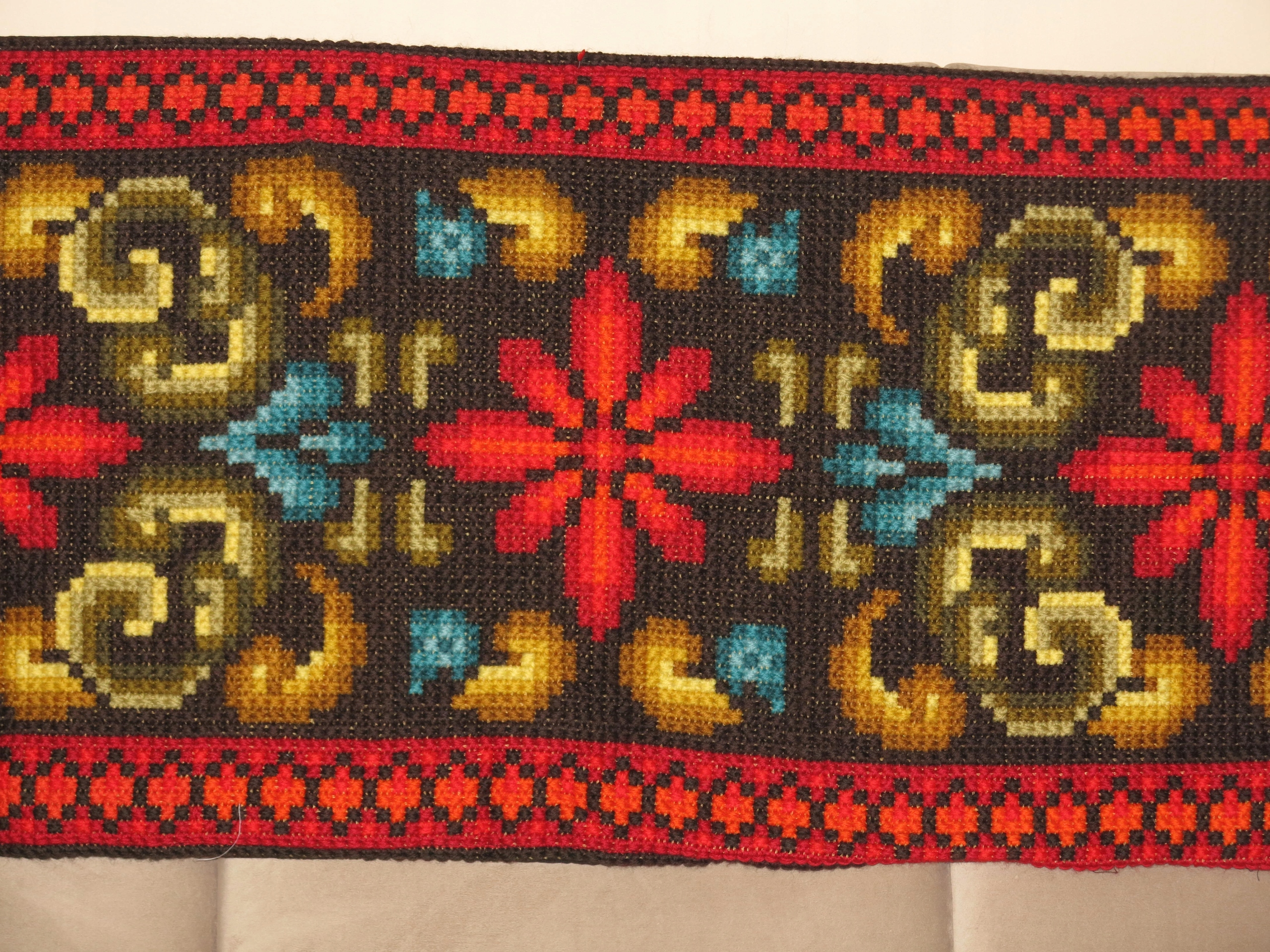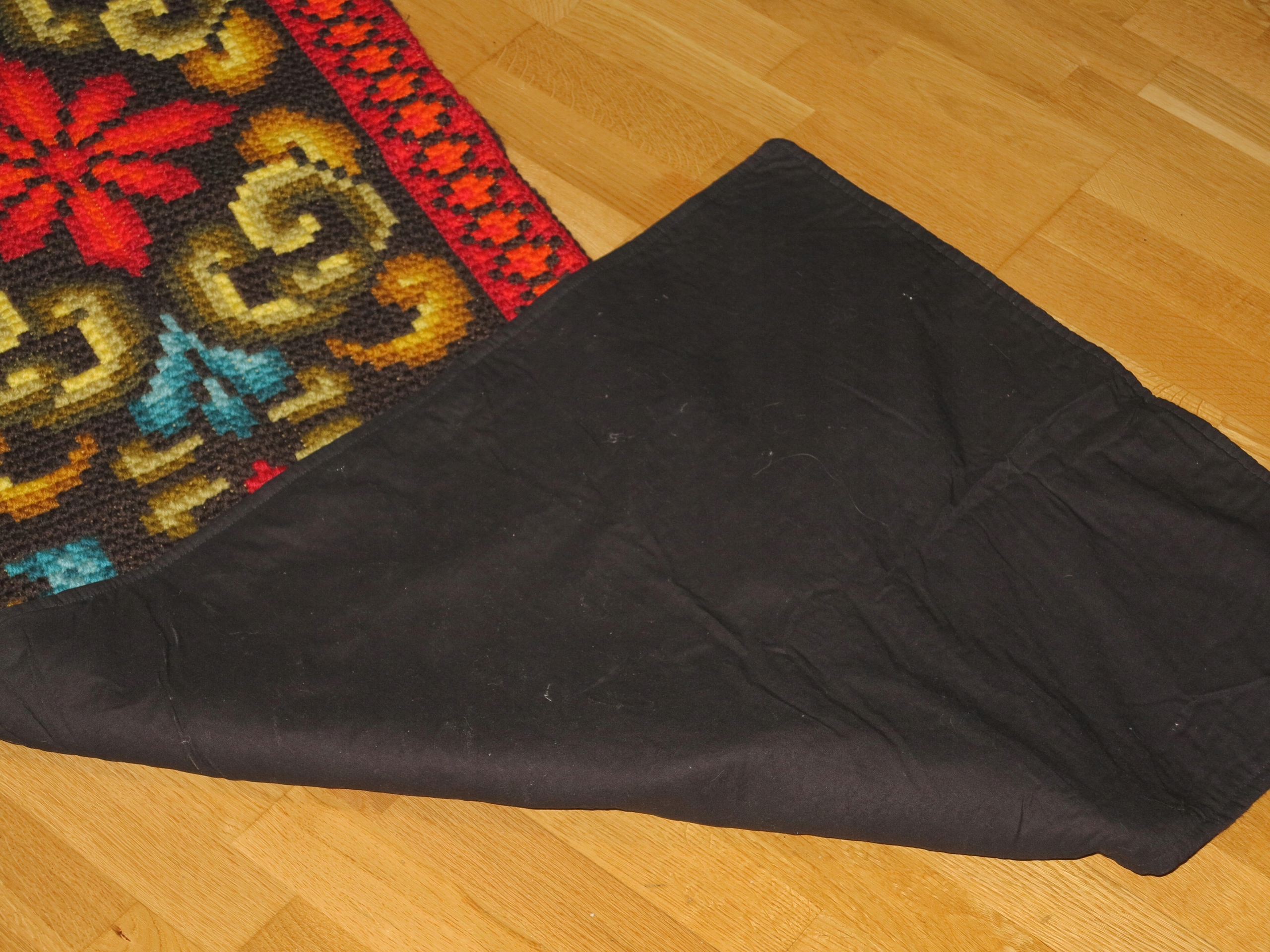 ОБРАЗЕЦ - РУЧНАЯ РАБОТА - КРАСИВЫЙ, СОСТАРЕНЫЙ, ЧИСТОЯ ШЕРСТЬ БОЛЬШОЙ НАСТЕННЫЙ КИЛИМ ИЛИ ШИРОКИЙ ЛАУФЕР НА СУНДУК, С ТОЛСТОЙ ВЫШИВКОЙ РУЧНОЙ РАБОТЫ. С НИЗУ НА ХЛОПКОВОМ ХОЛСТЕ. ОЧЕНЬ ЯРКИЕ ЦВЕТА