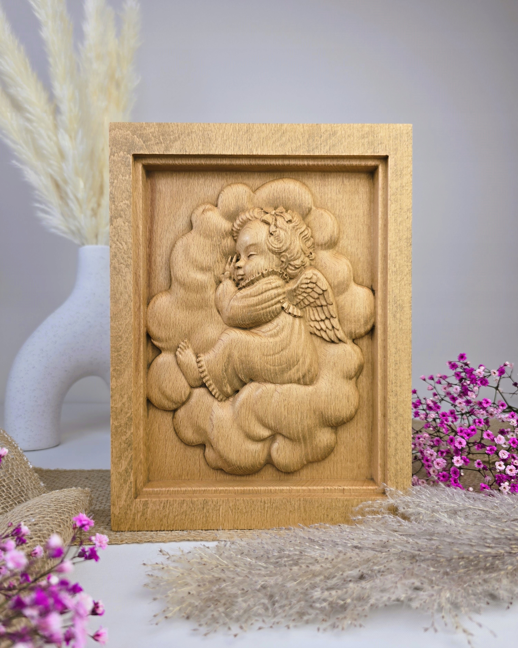 Картинка с ангелом, деревянный подарок крещения, гравюра 25x18.5
