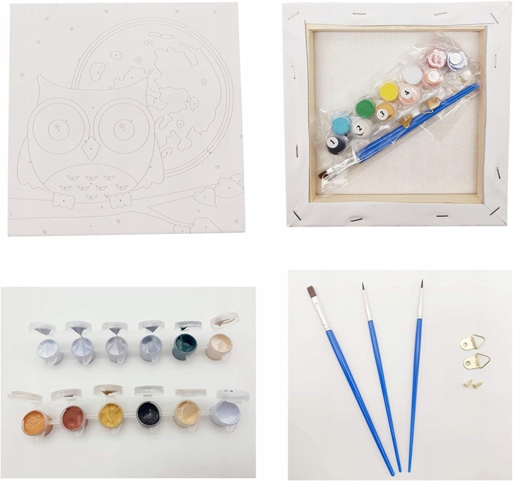 Найдите подходящую акриловую краску по номерам на холсте. Откройте коробку с краской, соответствующей номеру, и закрасьте холст кистью. Постепенно заполняйте разные пронумерованные области соответствующими пигментами. холст полностью покрыт, ваша работа закончена.