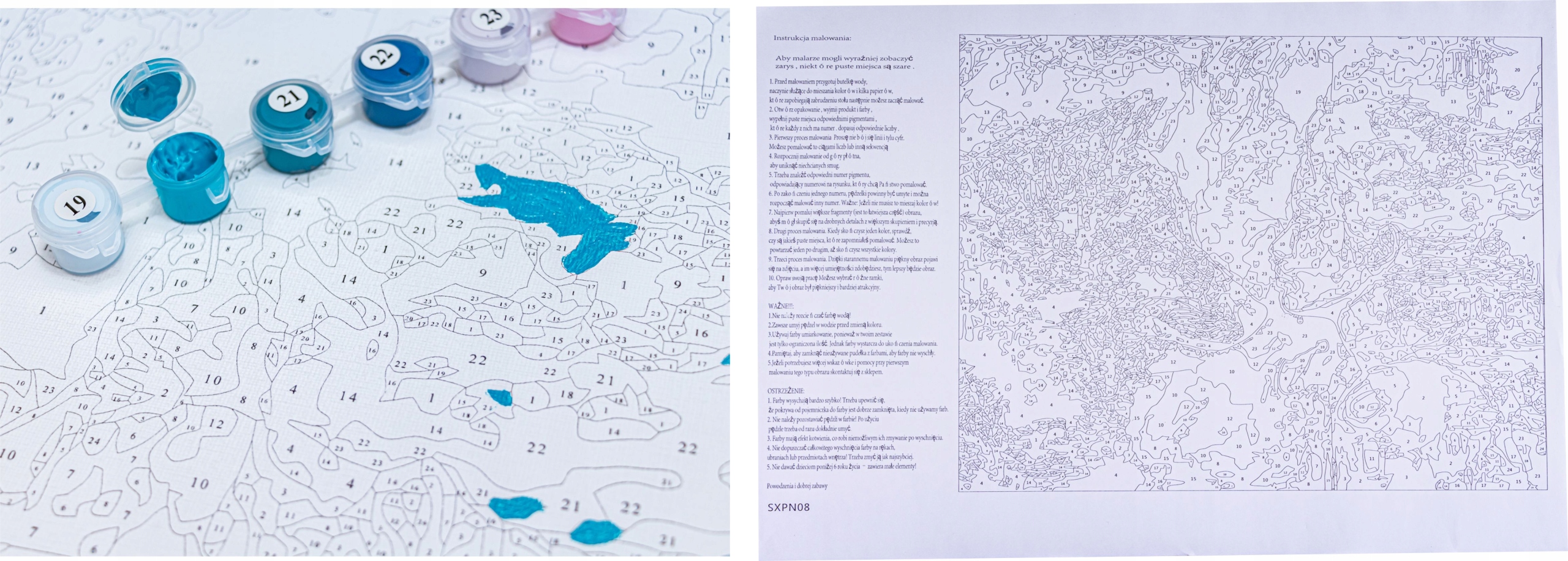 - Карточка с распечаткой всего рисунка, цифровой маркировкой и инструкцией на польском языке,