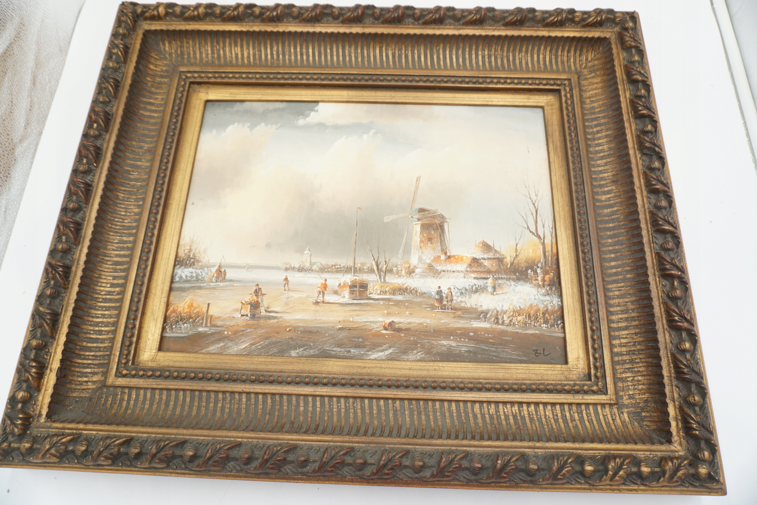Картина маслом на дереве, красивая золотая рама.