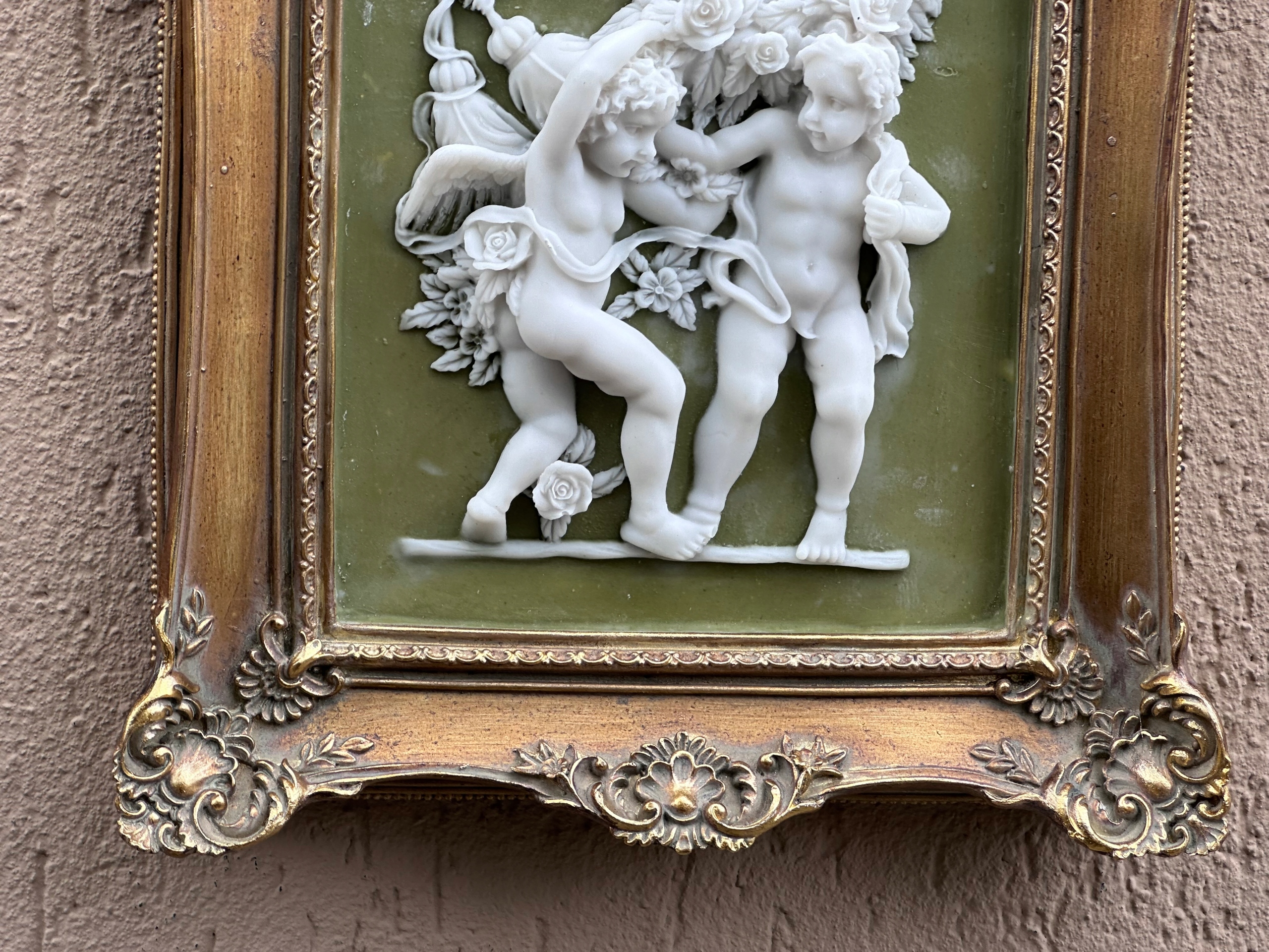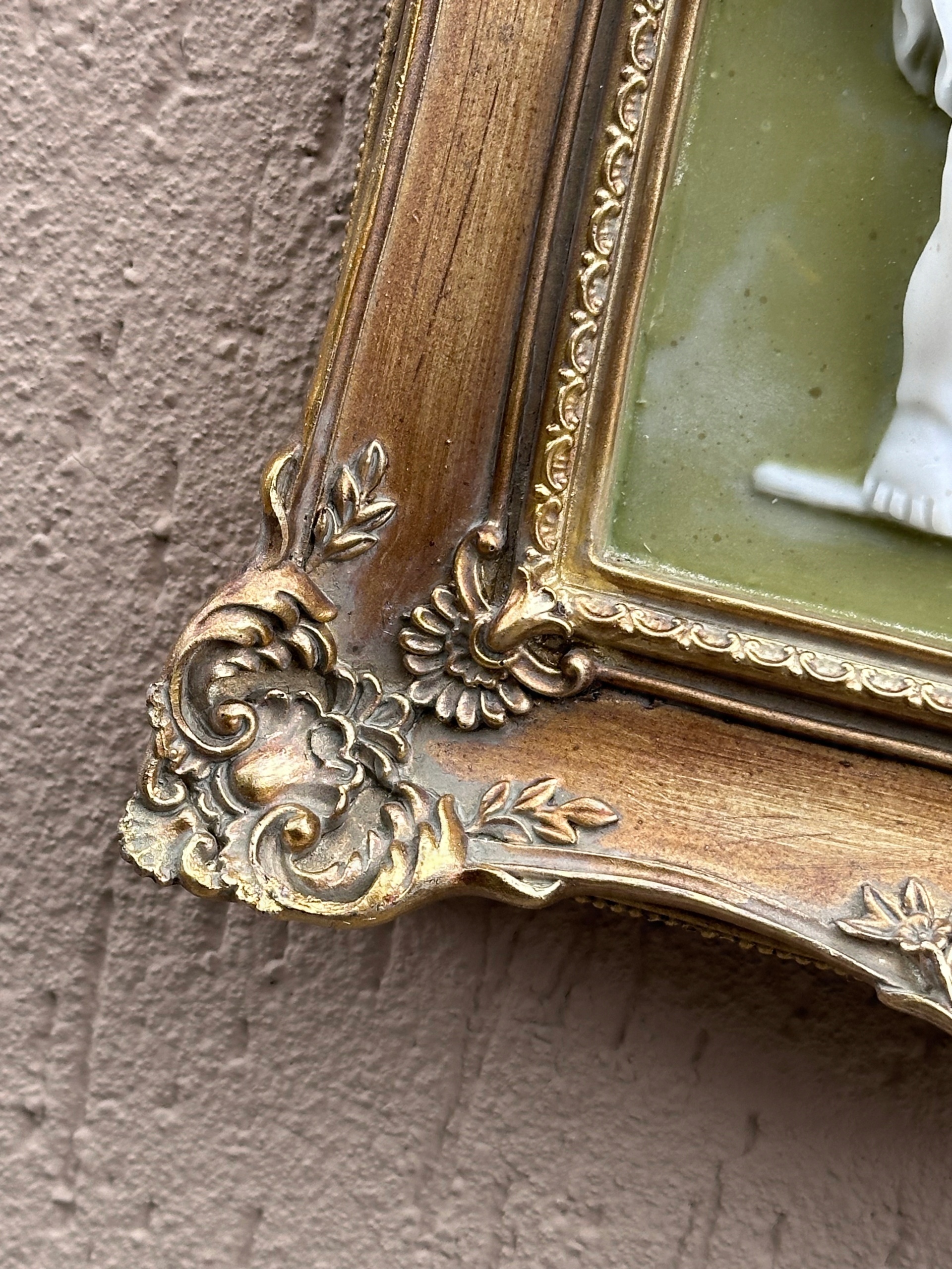 КАРТИНЫ ИЗ ПЛАСТИКА, ИМИТИРУЮЩЕГО АЛЕБАСТР, В ЗОЛОТОЙ РАМЕ.