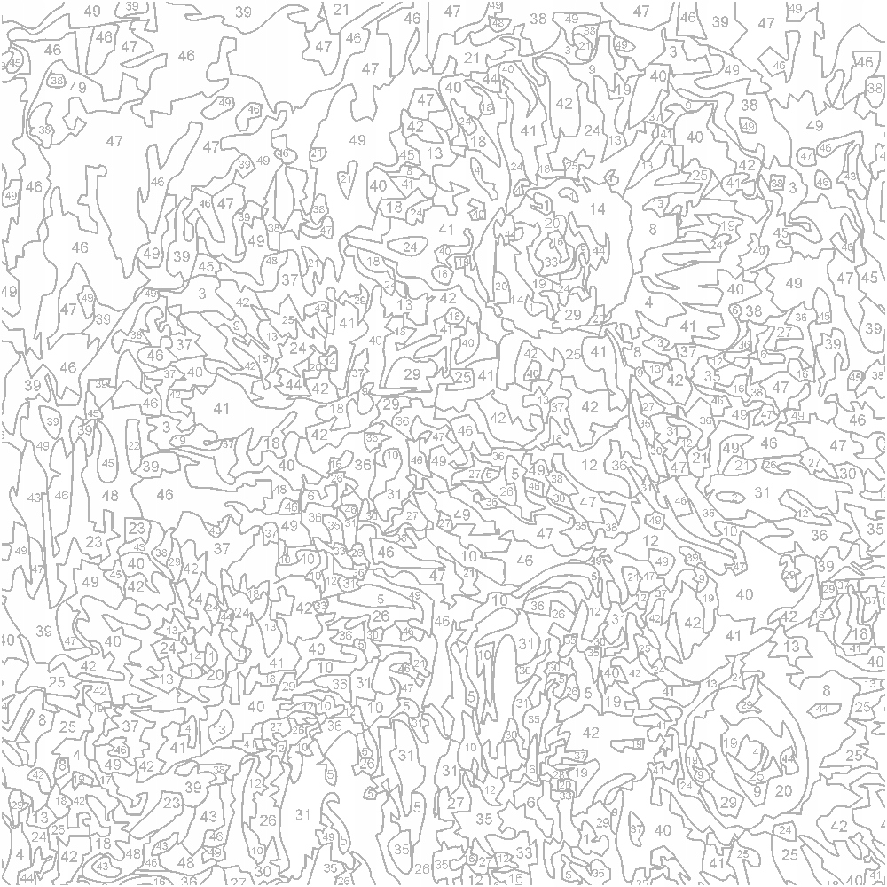 Контуры (фрагмент на фото), напечатанные на холсте, четко делят холст на сегменты. Контуры и номера сегментов напечатаны в высоком разрешении, что поможет вам получить истинное удовольствие от рисования.
