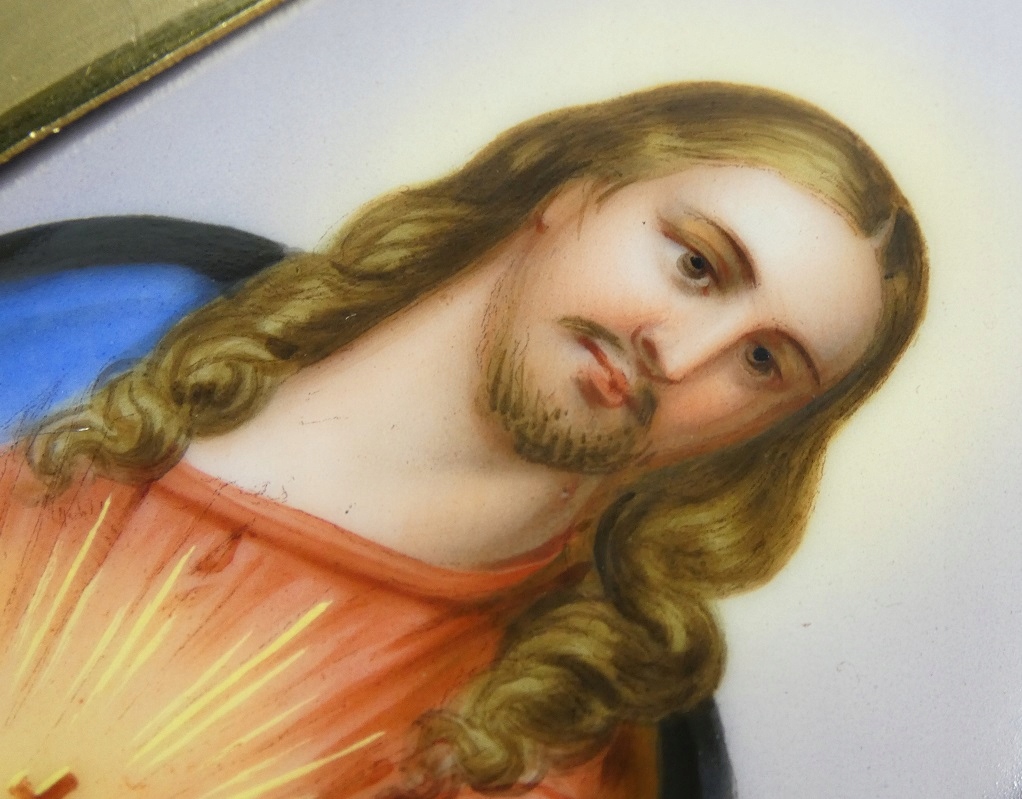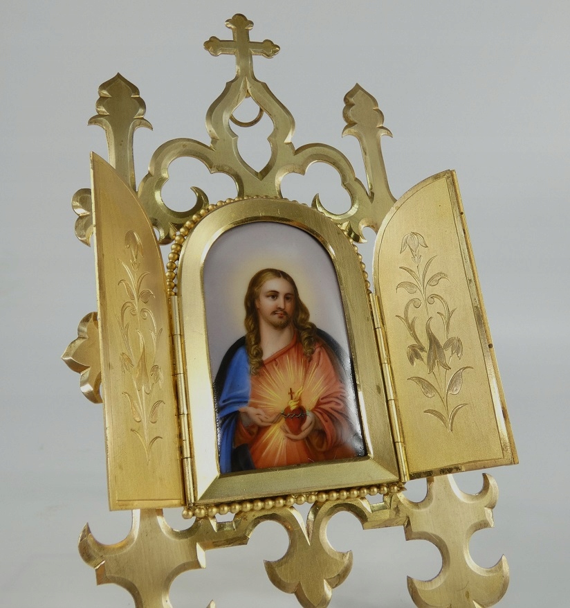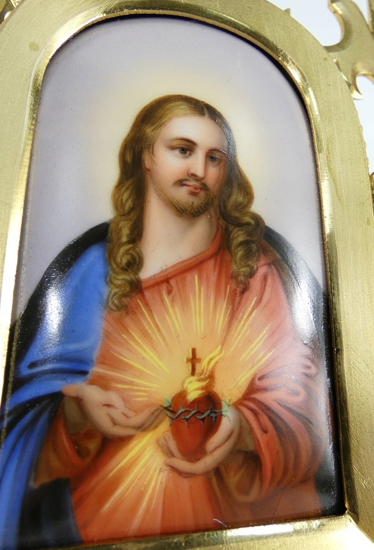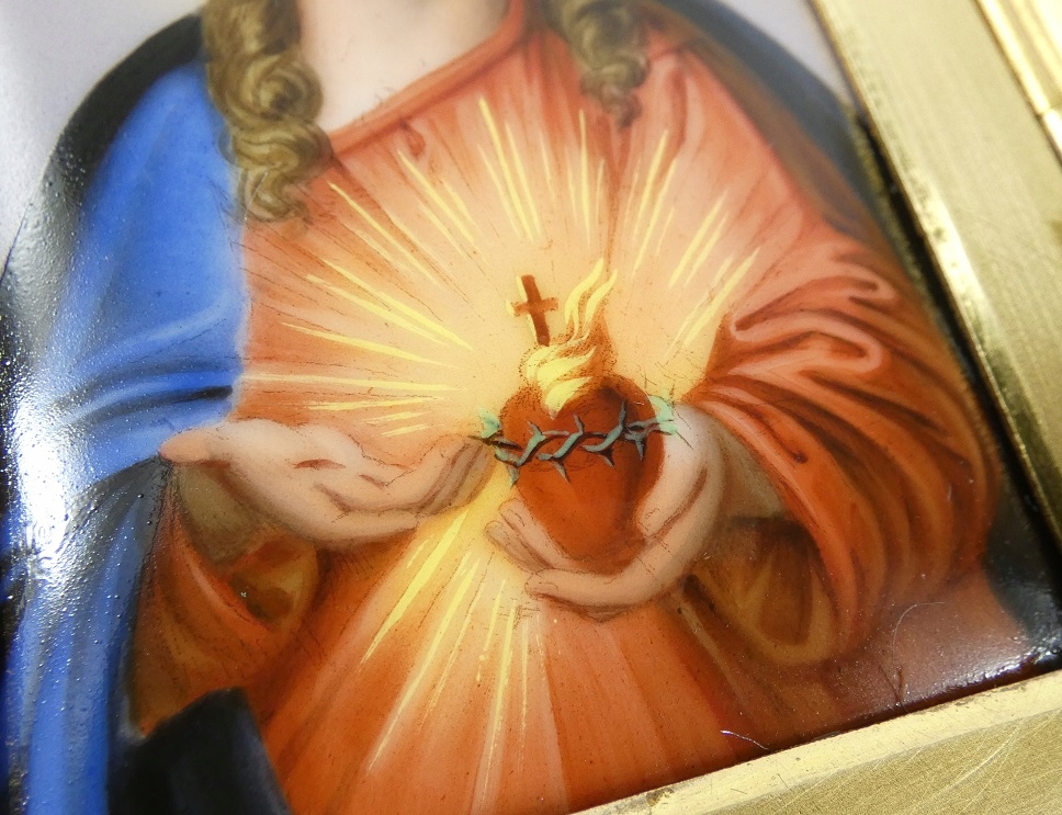 КАРТИНА подвесная, латунь, ЧАСОВНЯ, Сердце ИИСУСА, фарфор