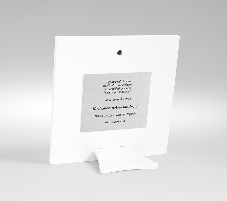 Посвященная табличка размещена на обратной стороне серебряной картины и выполнена в технике гравюры, то есть выбранный вами текст печатается на тонкой алюминиевой пластине. Техника гравировки гарантирует привлекательный внешний вид тарелки и ее долговечность. И самое главное, он не мешает поверхности серебряной картины, поэтому не становится персонализированным товаром - поэтому вы можете вернуть его в течение 14 дней без объяснения причин.