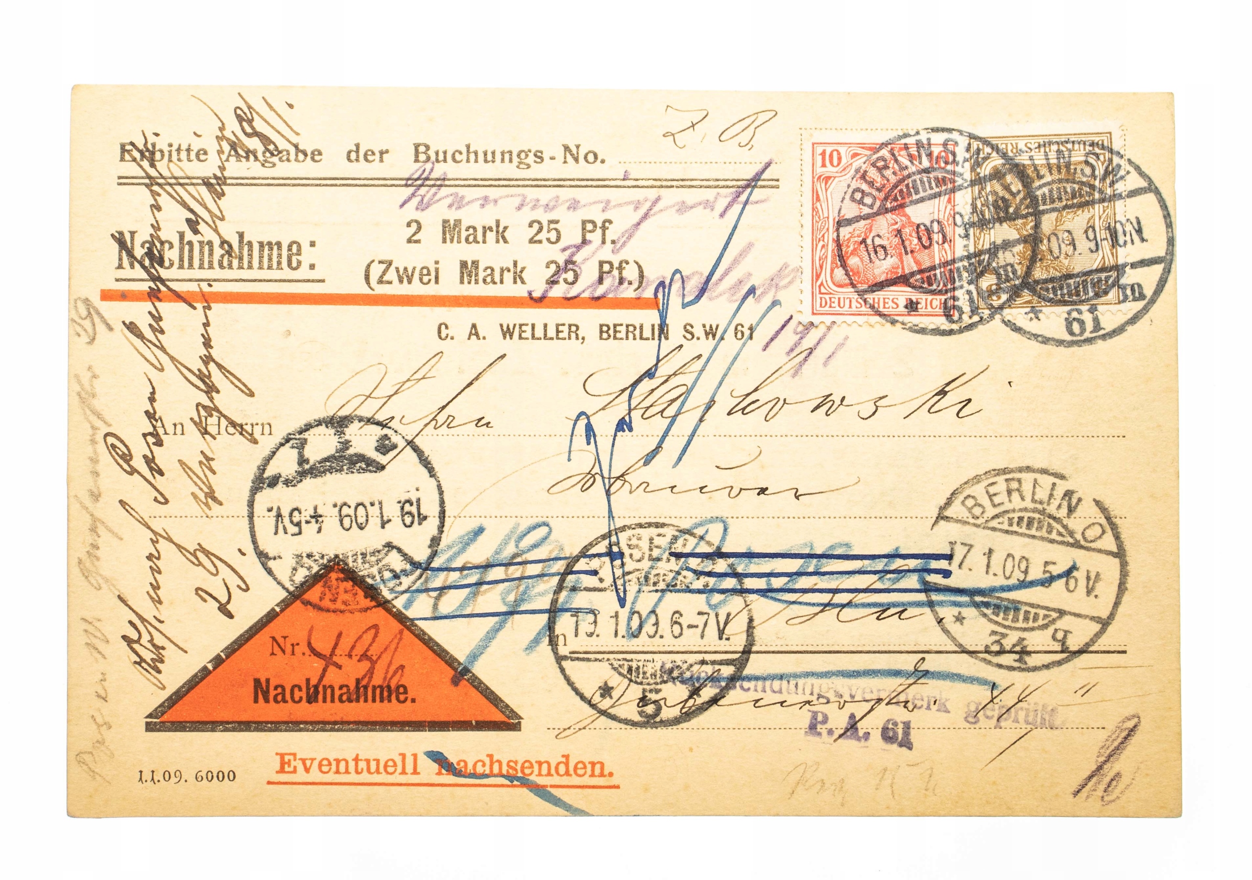 КАРТКА ДЛЯ ПЛАТЕЖІВ - ПОЗНАНЬ 1909 р