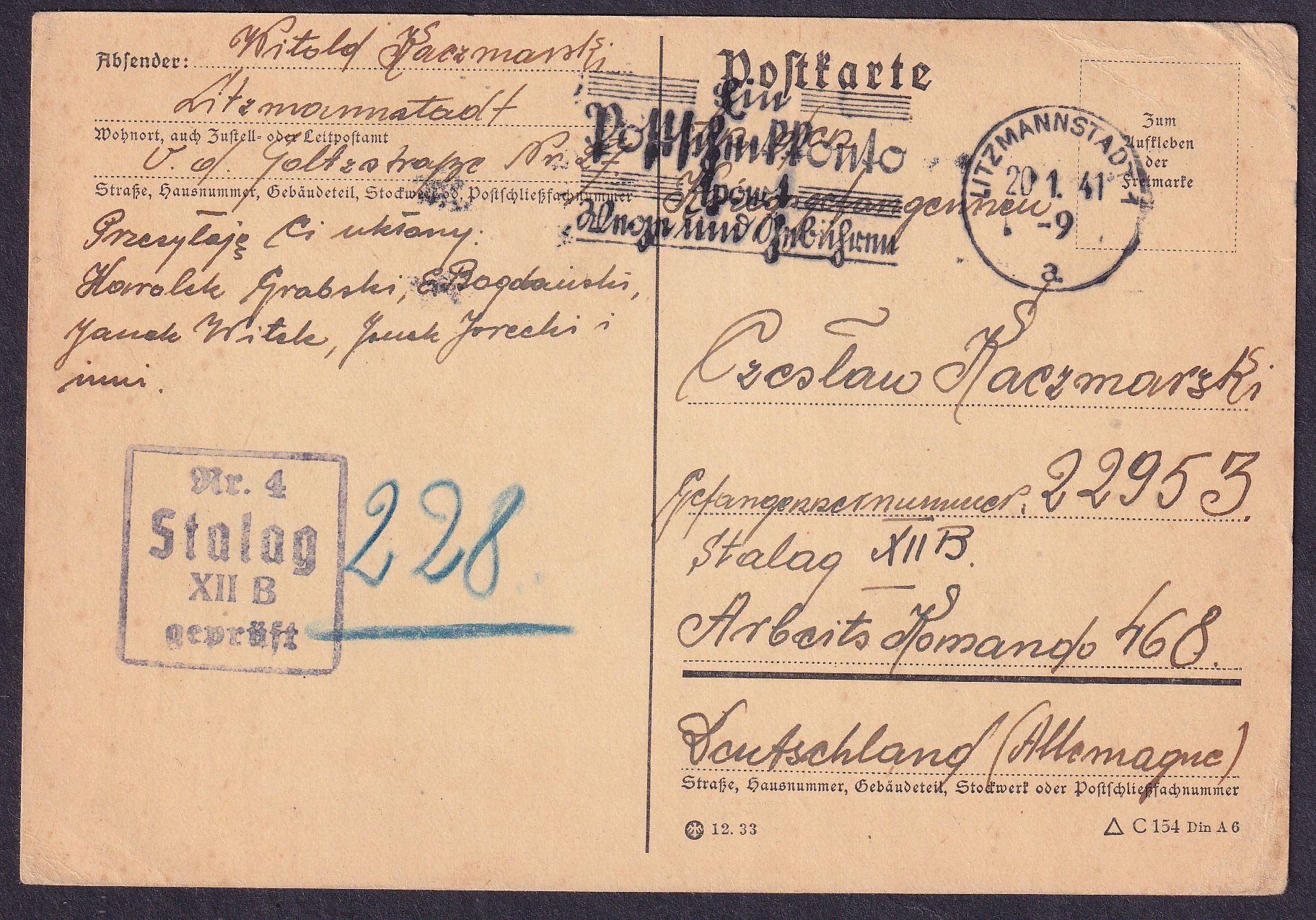 Сталаг XIIB Frankenthal Card для лагеря 1941 года (145)