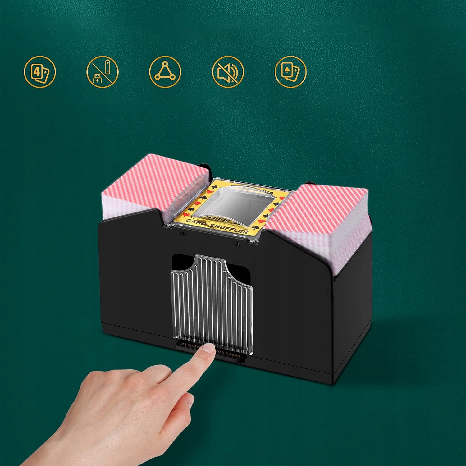 🎭 -【【 Инструмент для воспроизводительных карт】: Наш продукт смешивает 4 набора игральных карт одновременно. Электрическая карта может полностью освободить ваши руки и является идеальным инструментом для любителей игровых карт. Вы можете взять ее с собой, чтобы работать, на семейные встречи или кемпинг и позволить ему автоматически потенциал для вас.