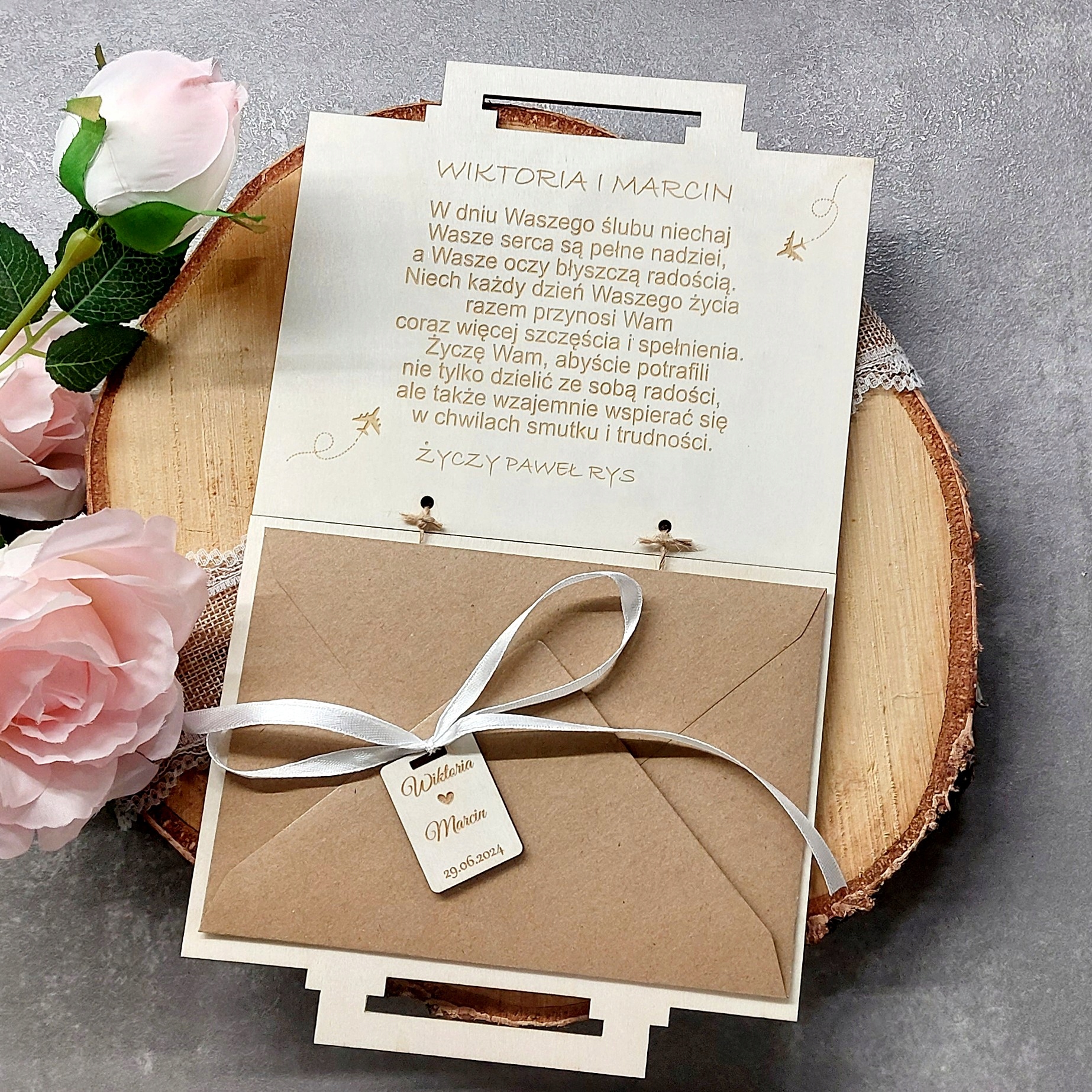 KARTKA WALIZKA NA ŚLUB NA PIENIĄDZE PREZENT ŚLUBNY DLA PARY MŁODEJ GRAWER