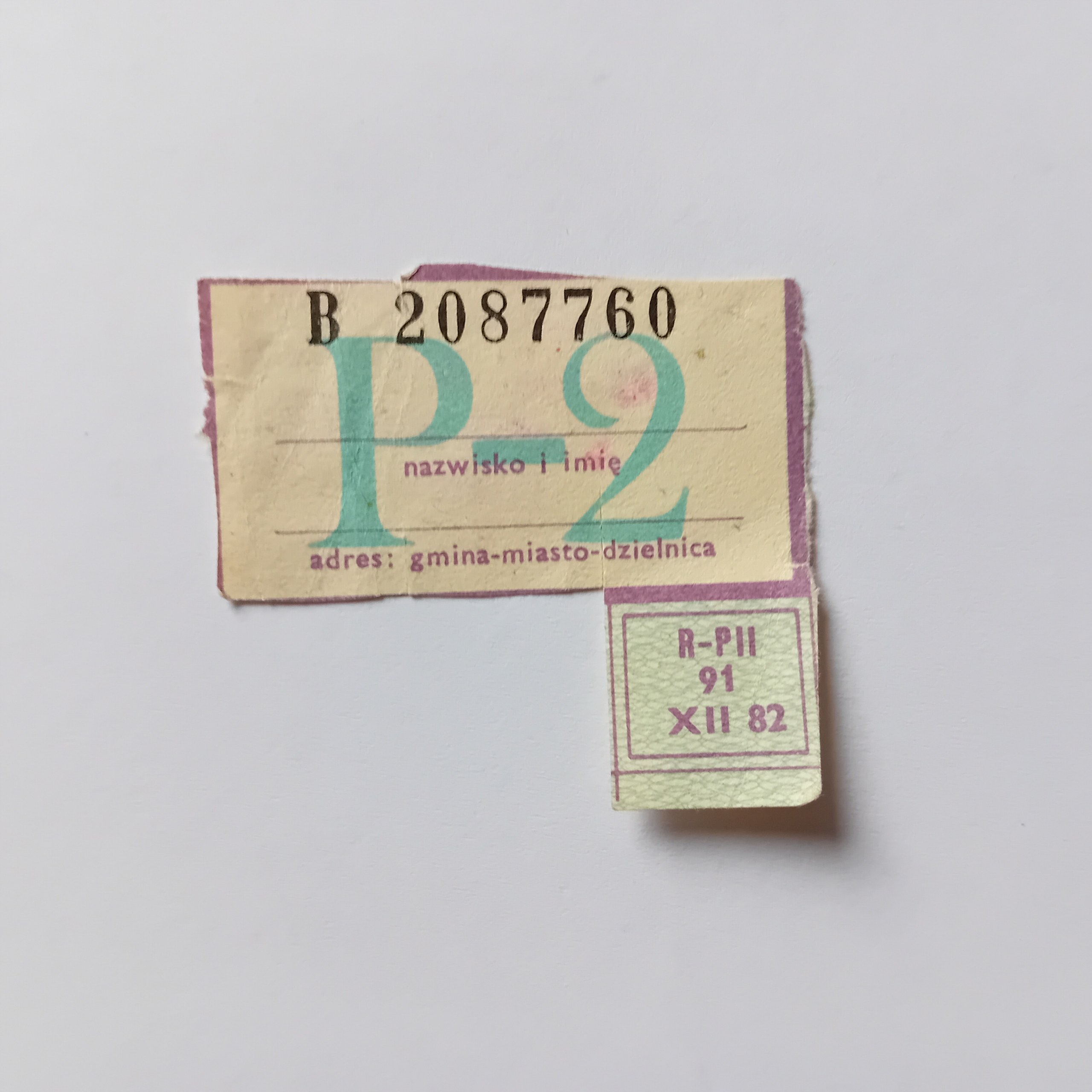Kartka żywnościowa P-2 grudzień 1982. Oryginał z pieczątką