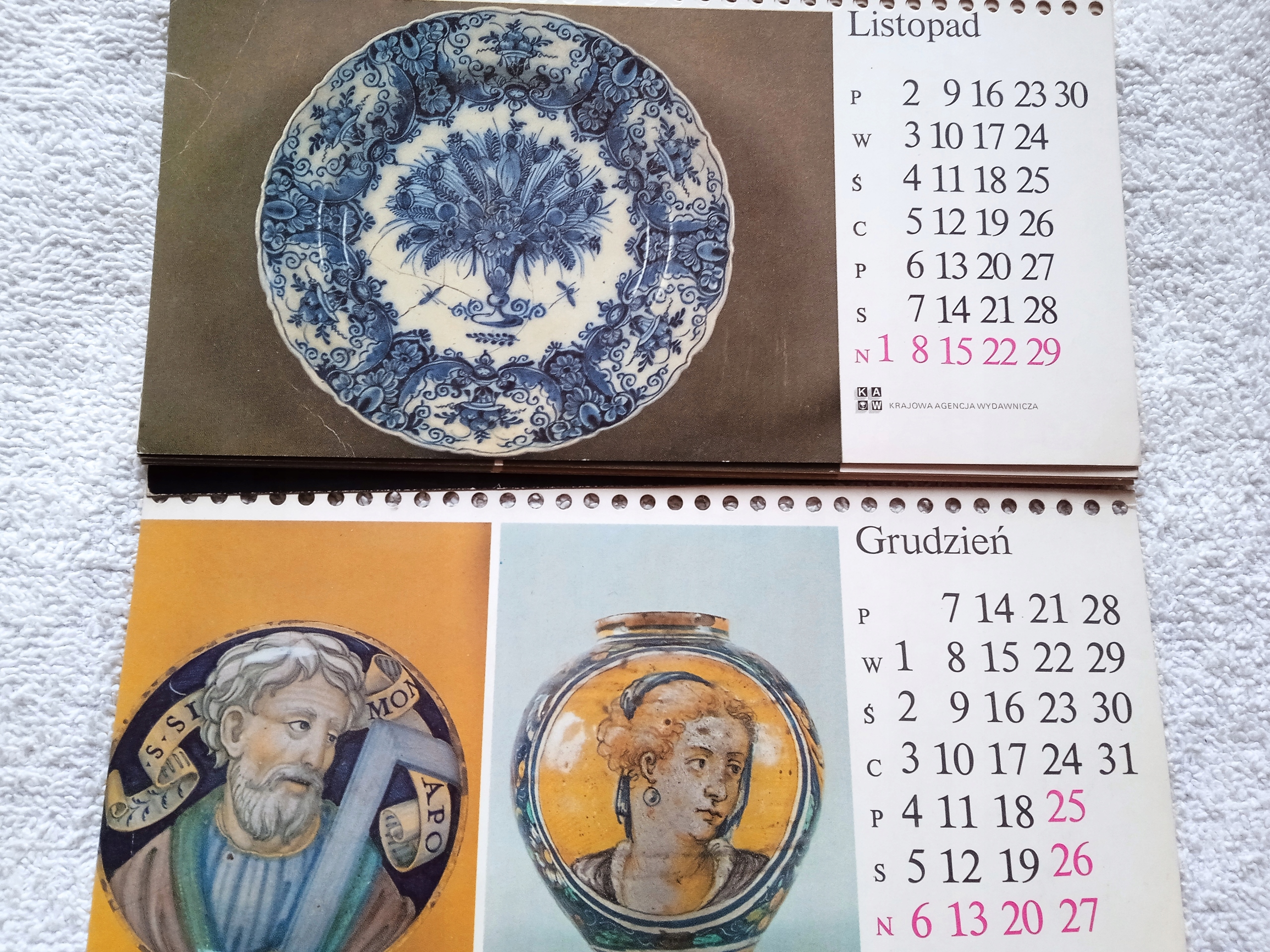 Продаю открытки и главную страницу настенного календаря за 1981 год изданного KAW (Национальное издательское агентство). Карточки размером 21,2 х 11 см, верхний край перфорирован - календарь скреплен пружинкой. На открытках представлены памятники польской и европейской майолики из коллекций польских музеев. В хорошем состоянии. На фотографиях показано реальное состояние.