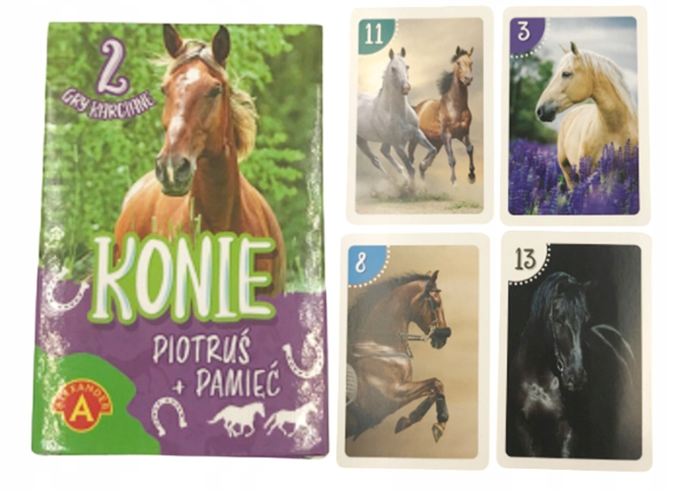 Набор из 25 карточек с красивыми, реалистичными изображениями лошадей, благодаря которым вы сможете сыграть с детьми в две базовые карточные игры - «Петя» и «Память». Обе игры отлично тренируют наблюдательность, развивают ассоциации и обучают социальному поведению. Это идеальное введение в мир игр для самых маленьких.