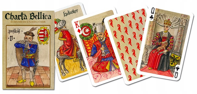 Игральные карты высочайшего качества от известной компании Ferd. Пятник и Зоне. Одна из самых оригинальных колод, изображающая четыре народа конца 16 века: венгров (червы), турок (бубны), немцев (трефы) и поляков (пики). Все картины — изображения городов, правителей, рыцарей и представителей других сословий — были написаны художником Сомоджи Мартоном. Колода состоит из 54 пластиковых карт размером 58 х 89 мм и весом 310. Идеально подходит для бриджа, покера, рамми и других игр. Продукция венской фабрики Ferd. С 1824 года Piatnik & Sohne очаровывает богатством дизайна и совершенством исполнения. Качество и традиции!