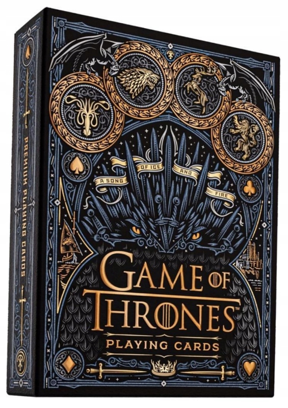 Премиальные игровые карты, вдохновленные легендарным телесериалом HBO Game сочетания бронзовых, золотых, ледяных и железных деталей, наряду с высококачественным текстурным вариантом, создает впечатление, как будто каждая колода пела песню льда и огня. Отправляйтесь в путешествие по Вестеросу и семи королевствам!