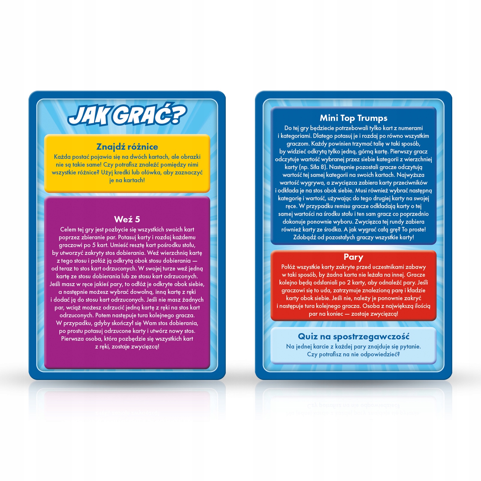 5в1 – пять увлекательных игр в одной колоде! Один компактный пакет с пятью динамичными играми, которые понравятся маленьким поклонникам Marvel.