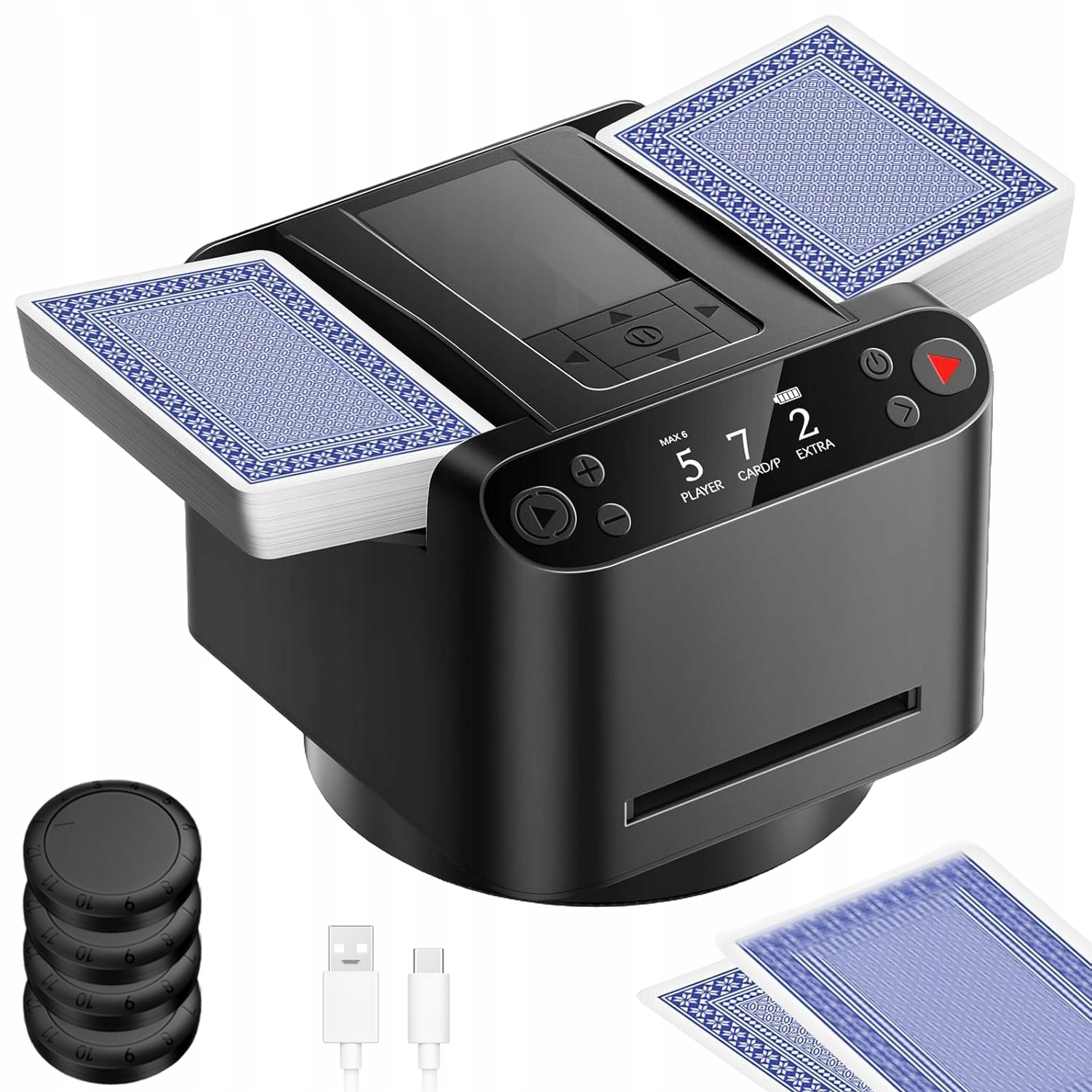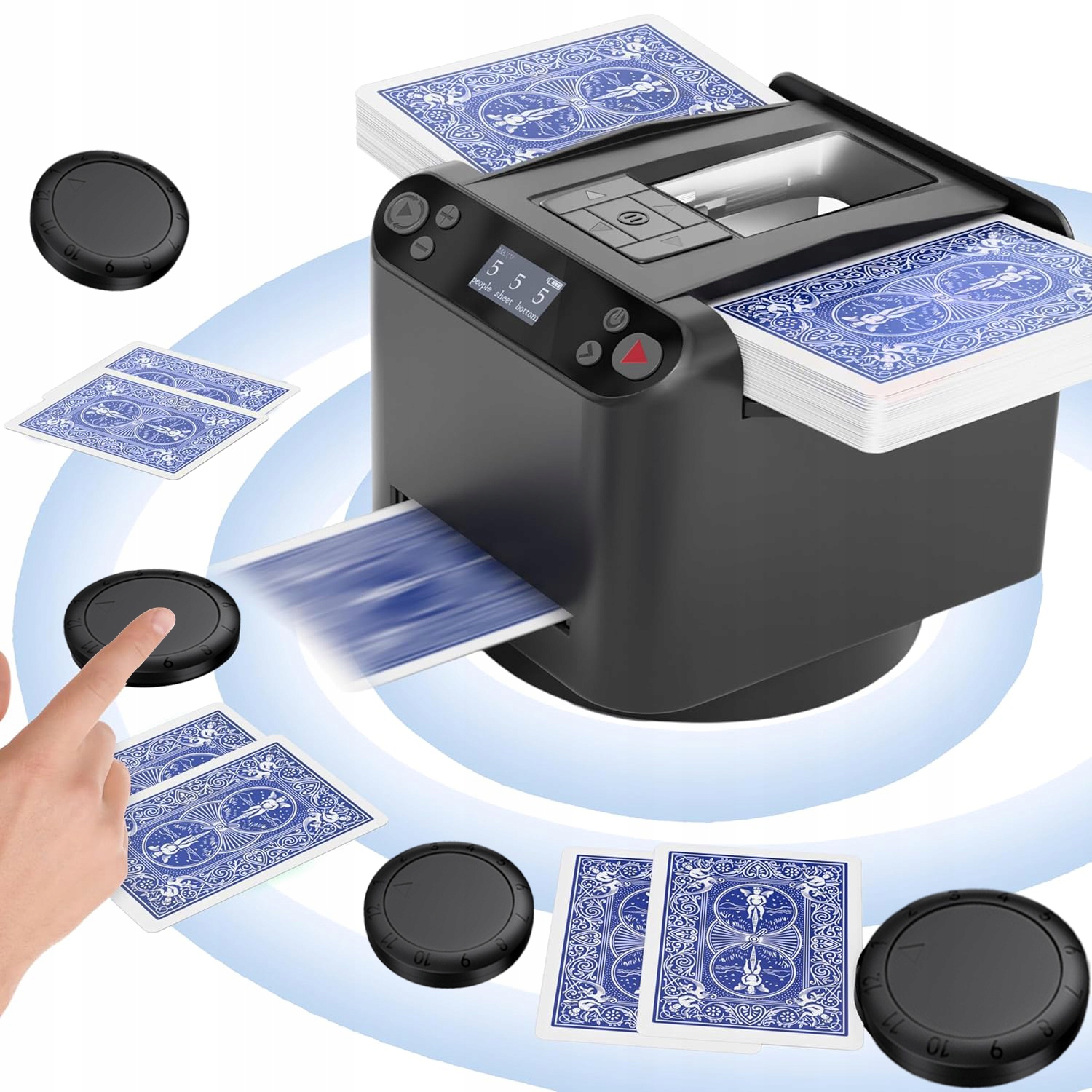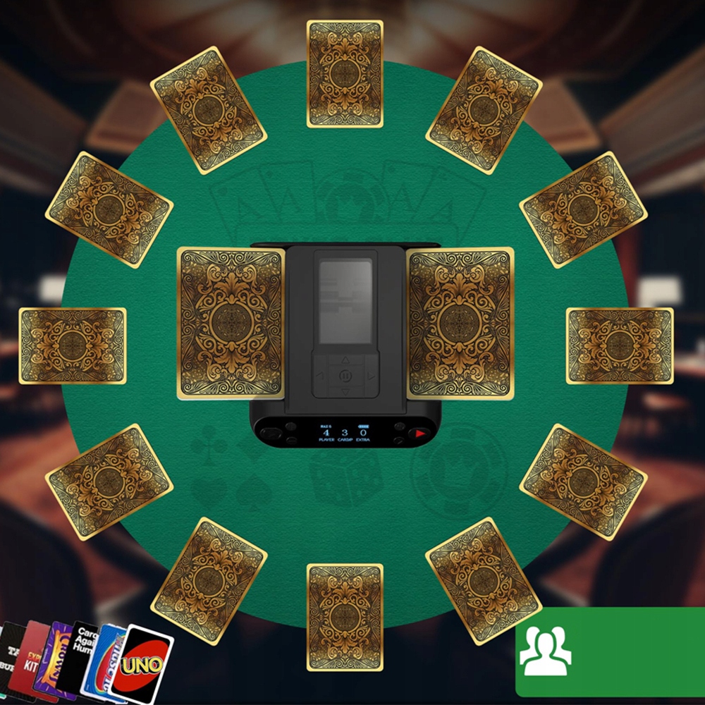 - Интеллектуальная перетасовка и раздача карт более справедливо и эффективно. Устройство имеет амортизационную и не солипную основу, которая позволяет вращать карты на 360 °, что увеличивает удобство использования.