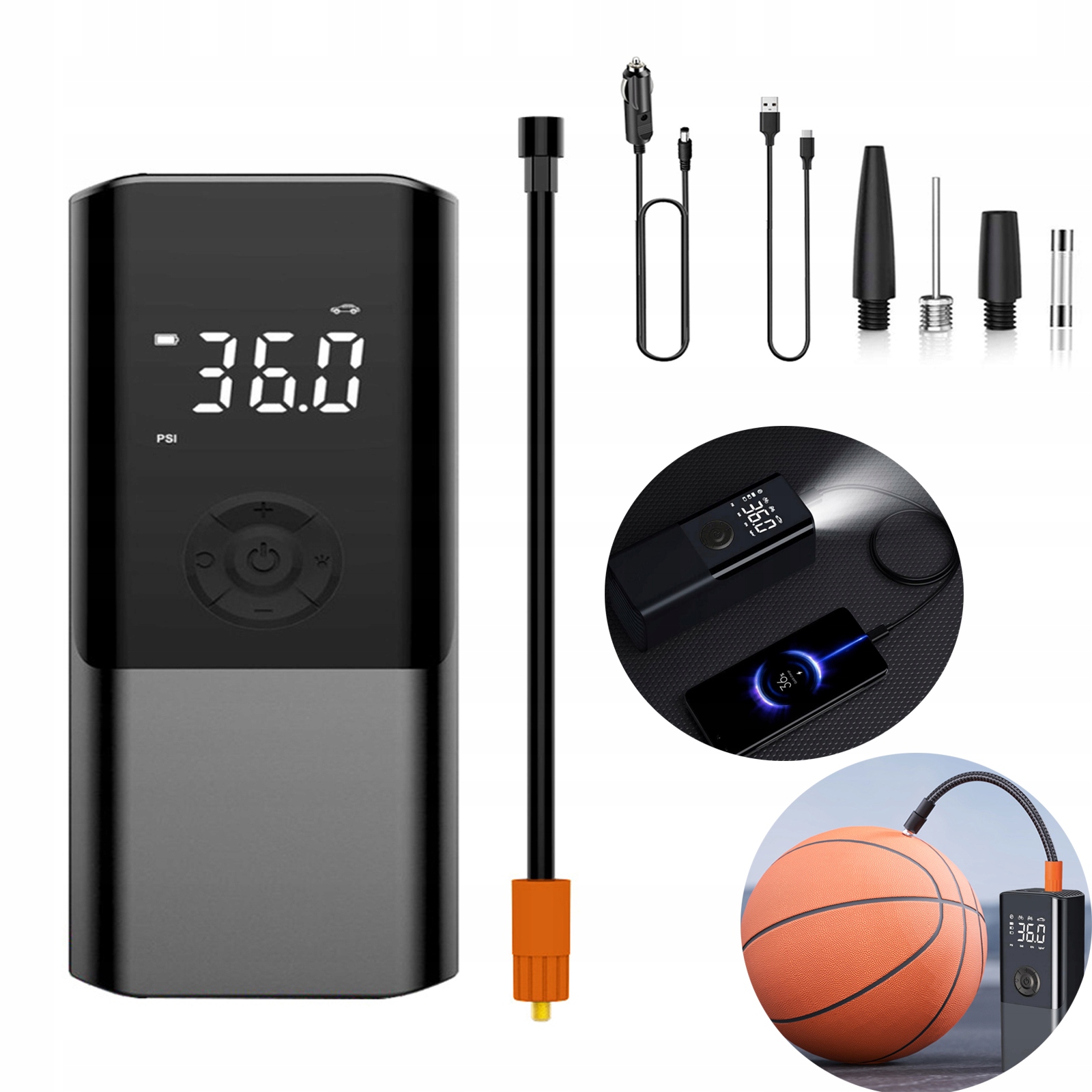✅✅potrzebujesz nizawodnego i wszechstronnego narzędzia do pompowania opon samochodowych i rowerowych? Откройте для себя наши современные и практические беспроводные электрические насосы. Оснащенный эффективной батареей 6000 мАч, он гарантирует длительную работу и высокую производительность. Он имеет большой дисплей и функцию Powerbank, что делает его идеальным для длинных поездок. Он маленький и простой в использовании, благодаря тому, что он станет незаменимым компаньоном для каждого путешествия. Поддерживать правильное давление в шинах никогда не было проще! ✅
